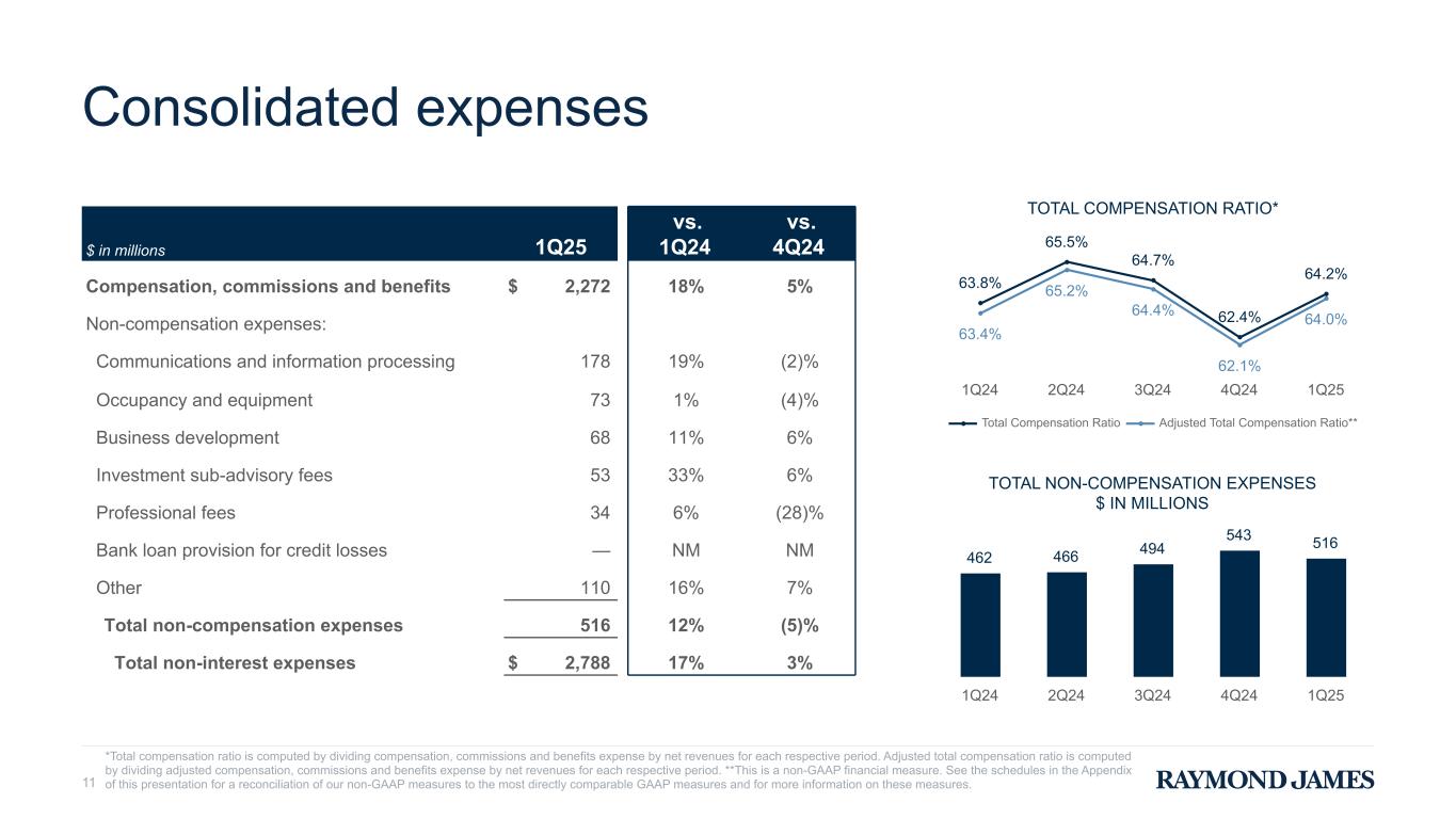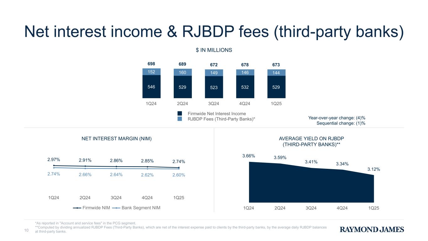 | (11) | Average yield on RJBDP - third-party banks is computed by dividing annualized RJBDP fees - third-party banks, which are net of the interest expense paid to clients by the third-party banks, by the average daily RJBDP balances at third-party banks. | |||||||