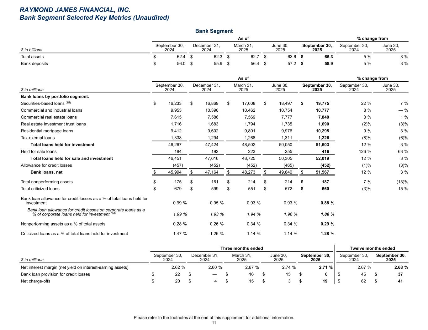 -プライベート・クライアント・グループの手数料ベースの口座資産は1兆100億ドルとなり、2024年9月比で15%増、2025年6月比で7%増となった。