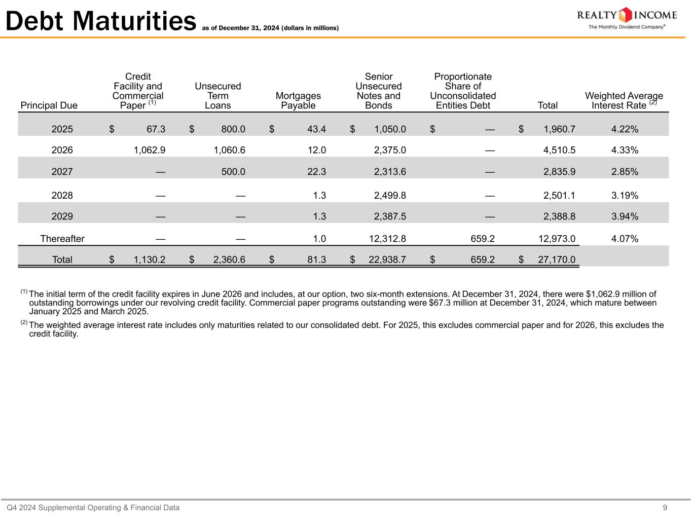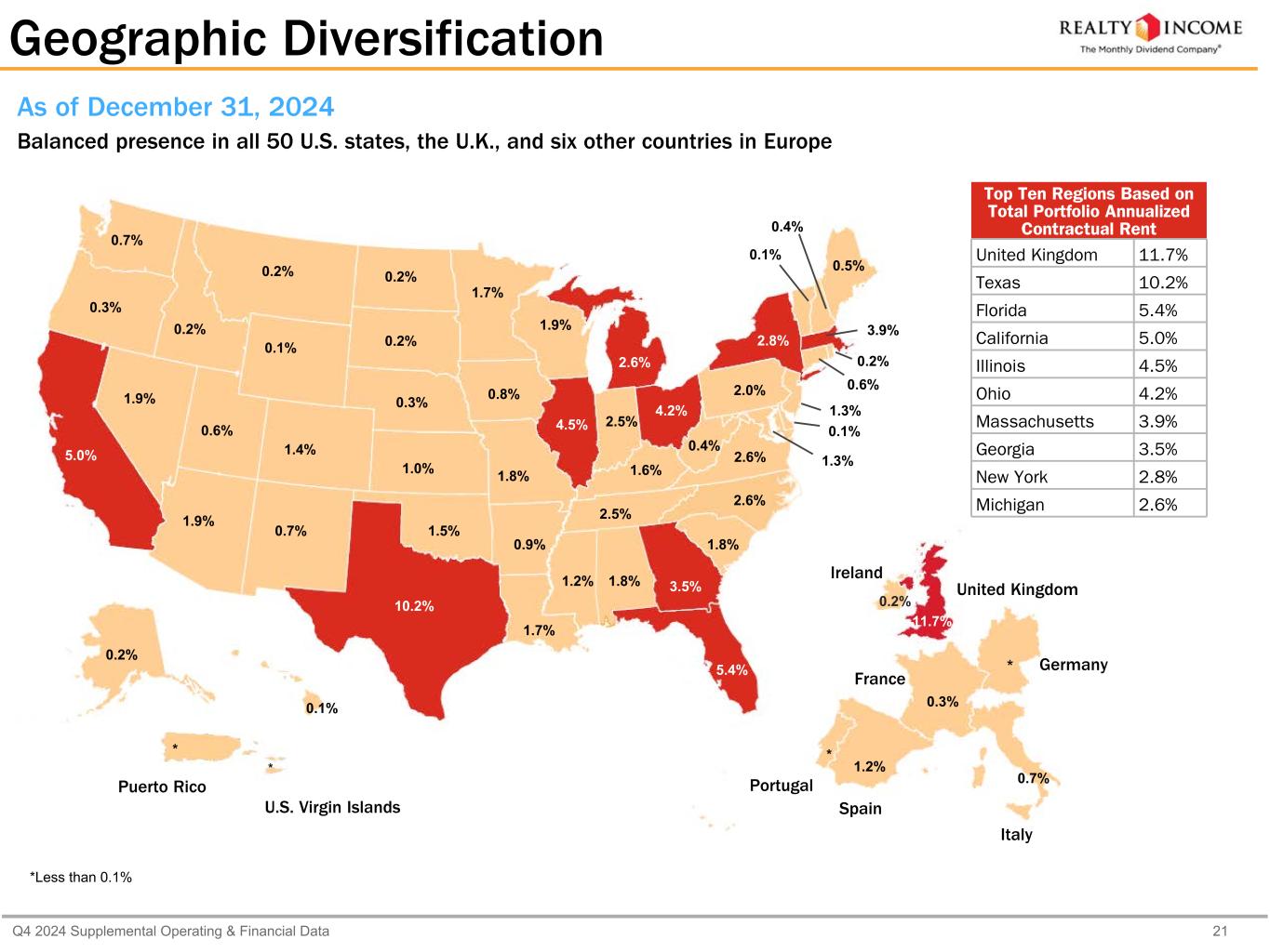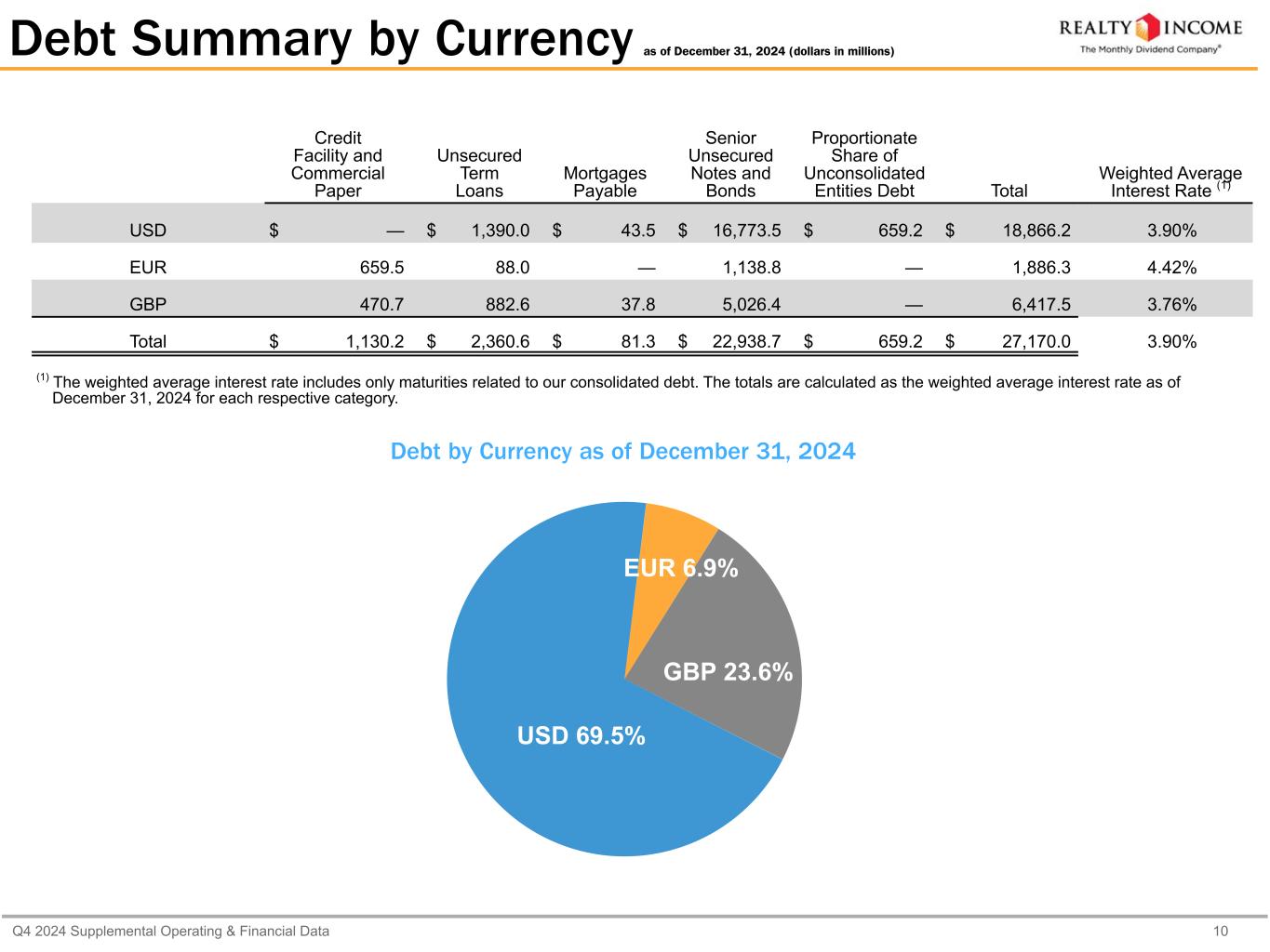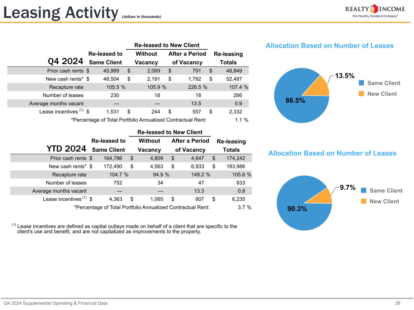 カリフォルニア州サンディエゴ、2025年2月24日...毎月配当会社®であるリアルティ・インカム・コーポレーション(リアルティ・インカム、NYSE:O)は本日、2024年12月31日に終了した3ヶ月間および年間の営業成績を発表しました。本プレスリリースに記載された一株当たり金額は、別段の記載がない限り、希薄化後普通株一株当たりベースです。