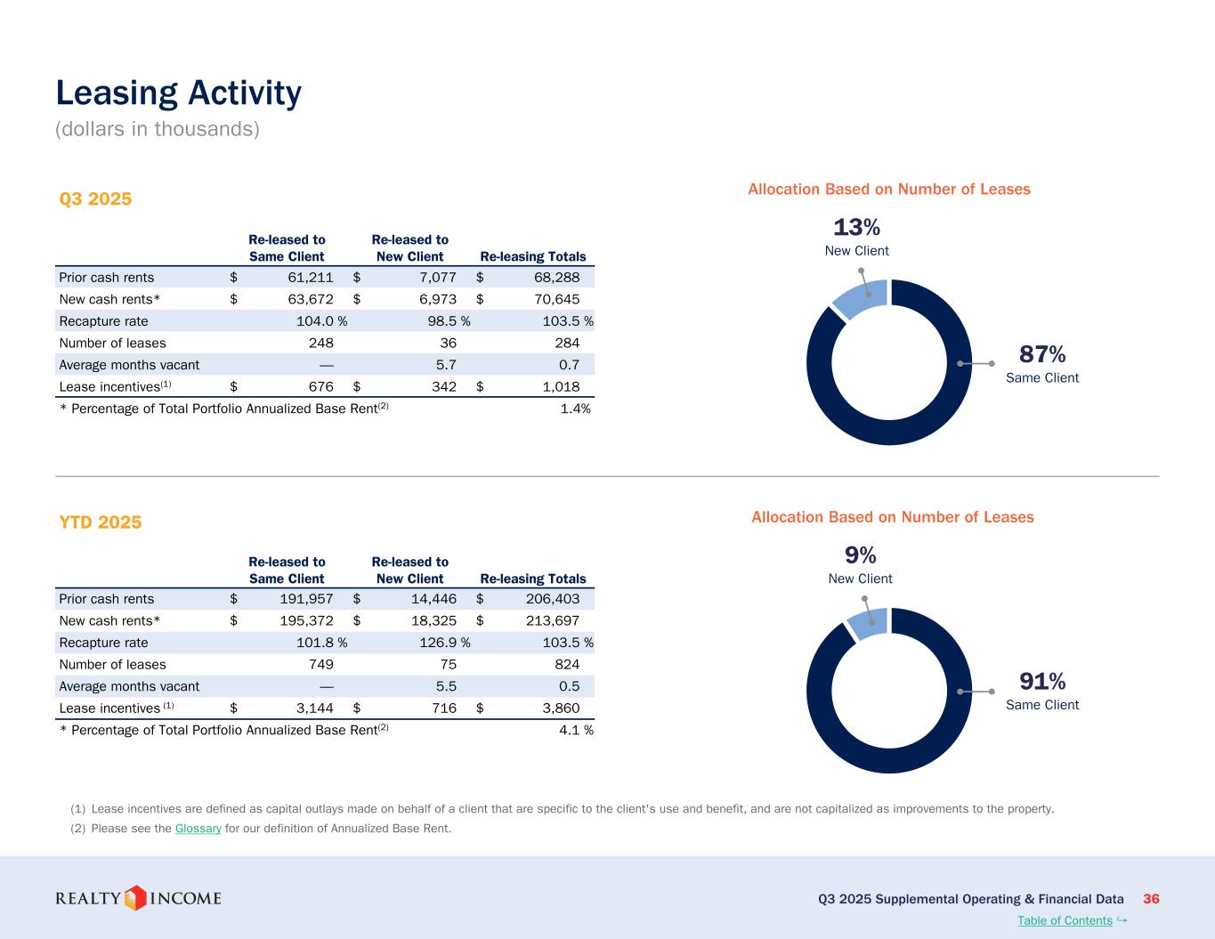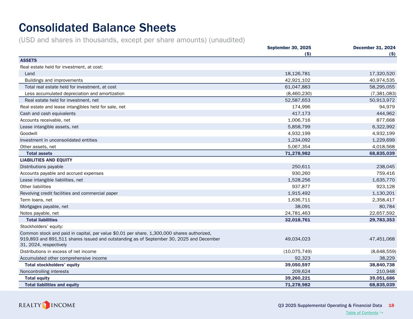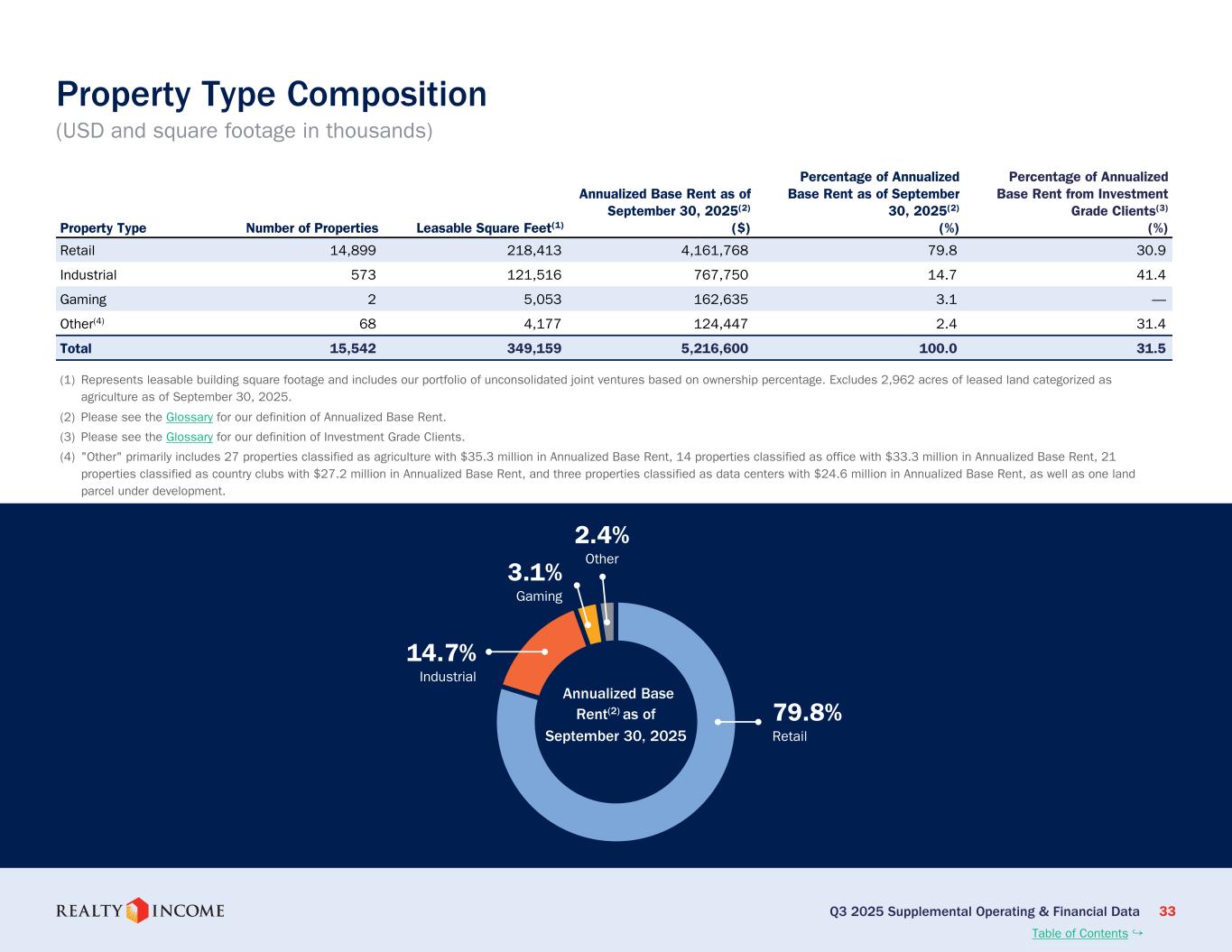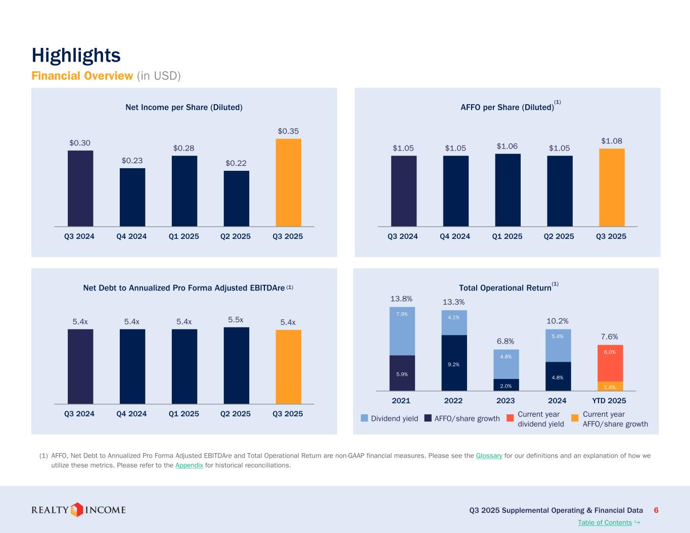 カリフォルニア州サンディエゴ、2025年11月3日...毎月配当会社®であるリアルティ・インカム・コーポレーション(リアルティ・インカム、NYSE:O)は本日、2025年9月30日に終了した3ヶ月間および9ヶ月間の営業成績を発表しました。このプレスリリースに示された一株当たりの金額はすべて、別段の記載がない限り、希薄化普通株一株当たりベースです。