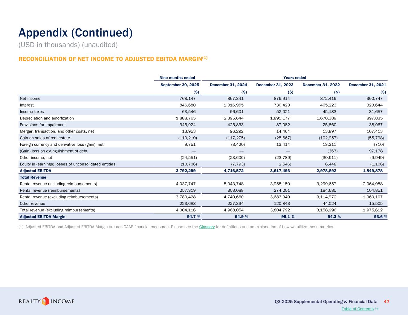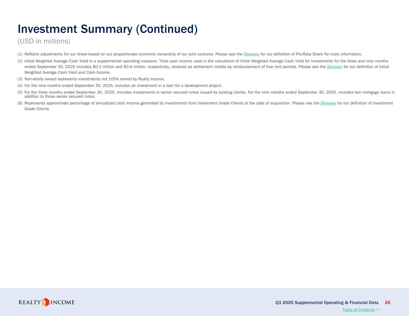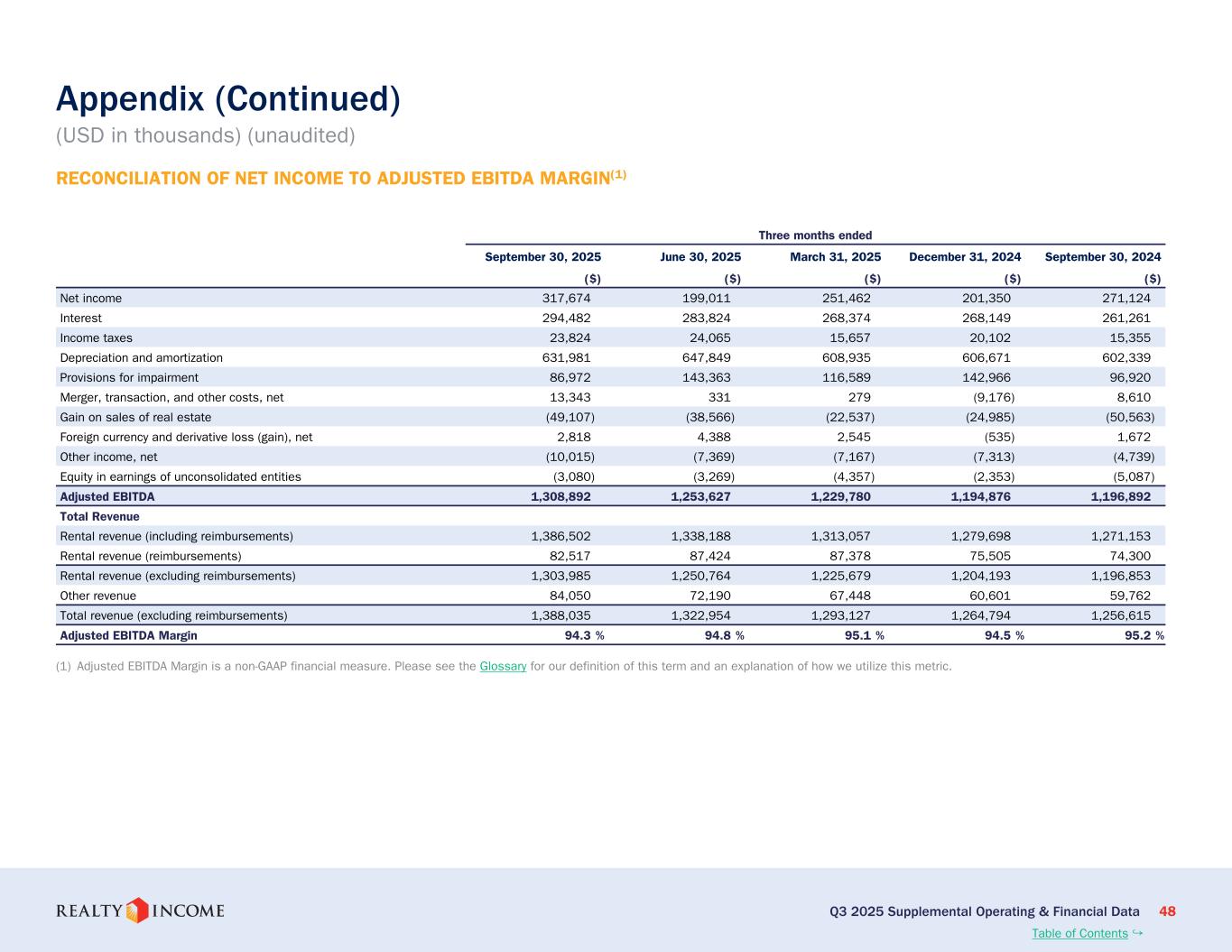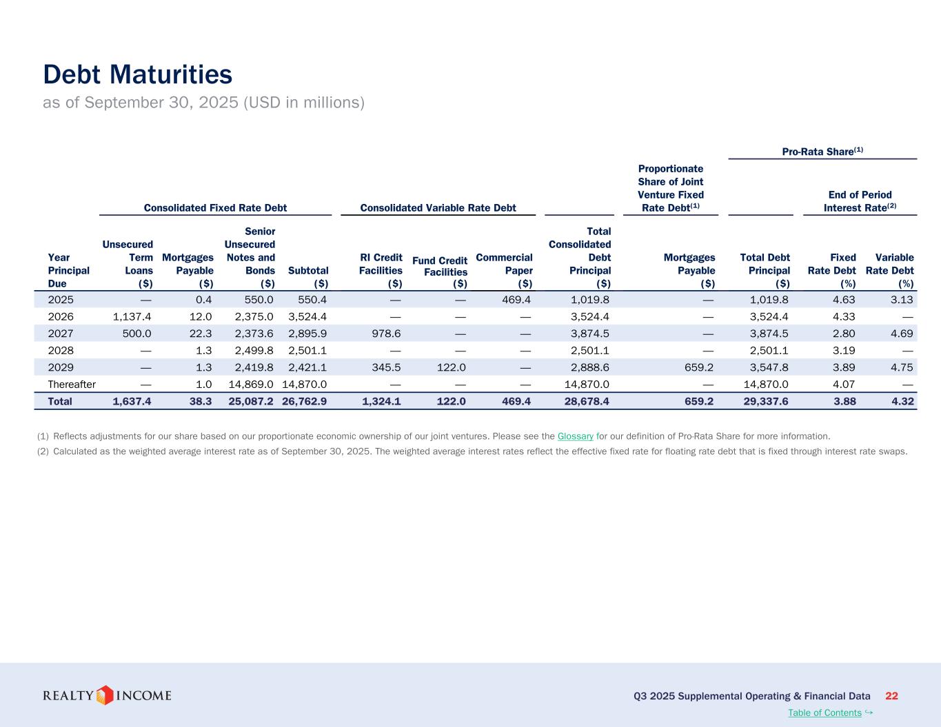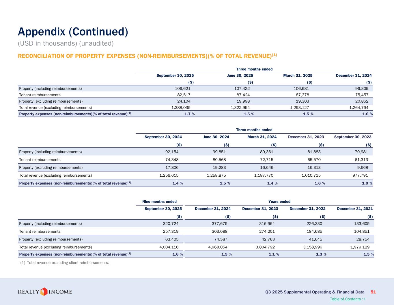 カリフォルニア州サンディエゴ、2025年11月3日...毎月配当会社®であるリアルティ・インカム・コーポレーション(リアルティ・インカム、NYSE:O)は本日、2025年9月30日に終了した3ヶ月間および9ヶ月間の営業成績を発表しました。このプレスリリースに示された一株当たりの金額はすべて、別段の記載がない限り、希薄化普通株一株当たりベースです。