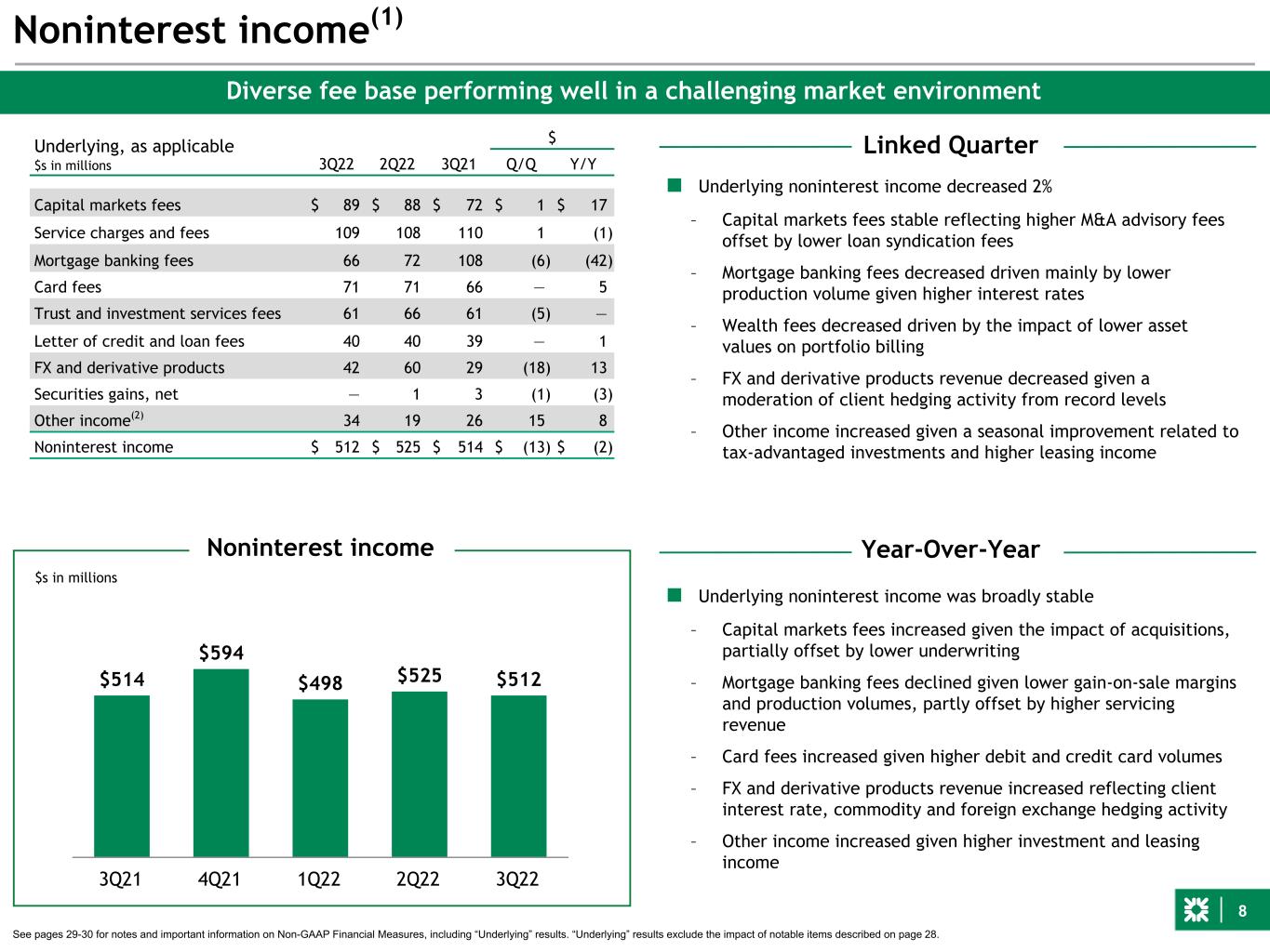 -モーゲージ・バンキング手数料は、主に金利上昇に伴う生産量の減少により、600万米ドル減少 しました。