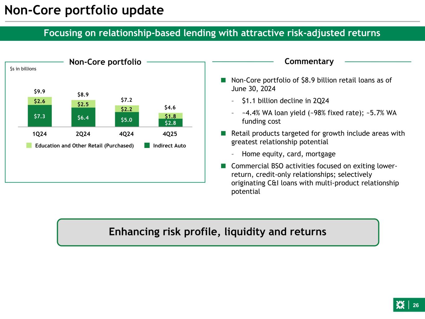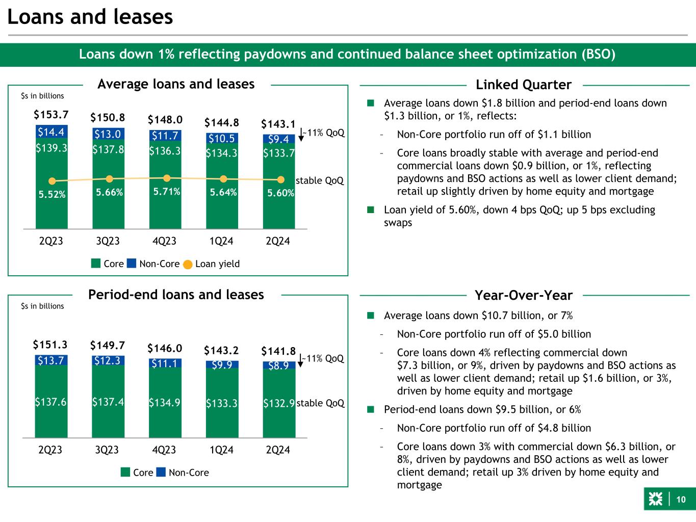 ■Period-end and average loans down 1% QoQ given balance sheet optimization, including Non-Core portfolio run off, and paydowns in Commercial