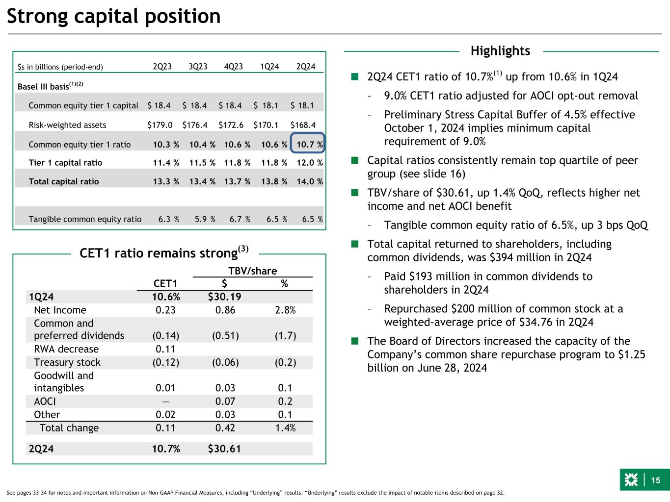 ■TBV/share of $30.61, up 1.4% QoQ reflects higher net income and net AOCI benefit