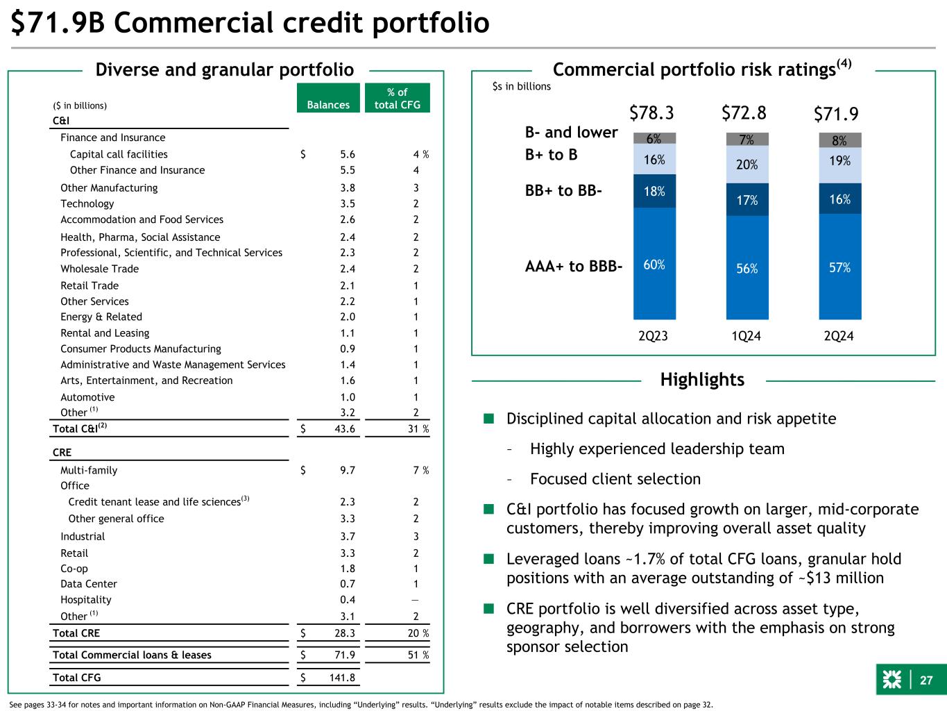 ■Net charge-offs of 52 bps, up 2 bps QoQ reflects broadly stable charge-offs and lower average loans