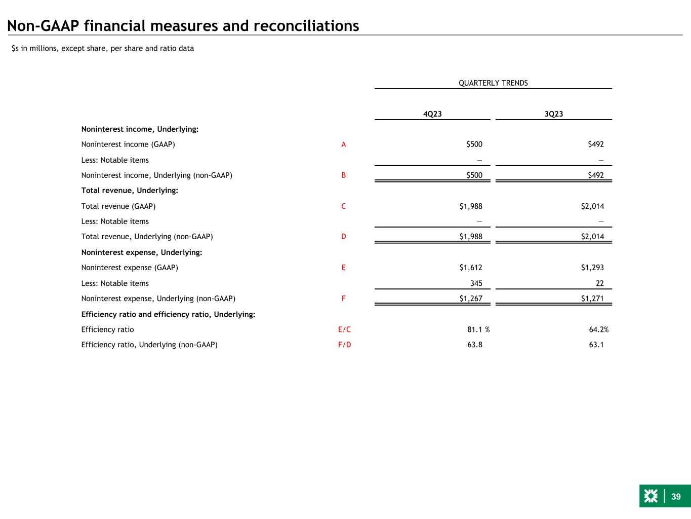 | Noninterest expense (GAAP) | D | $905 | $324 | $28 | $355 | $1,612 | $905 | $325 | $30 | $33 | $1,293 | ||||||||||||||||||||||||||||||||||||||||||||||||||||||
