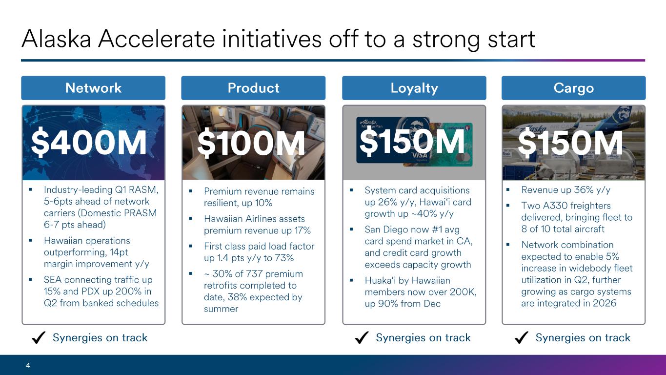 Our team is executing well on integration milestones, cost performance, synergy capture and the initiatives that underpin the Alaska Accelerate plan. Our efforts to deliver $1 billion in incremental profit by 2027 are off to a strong start.