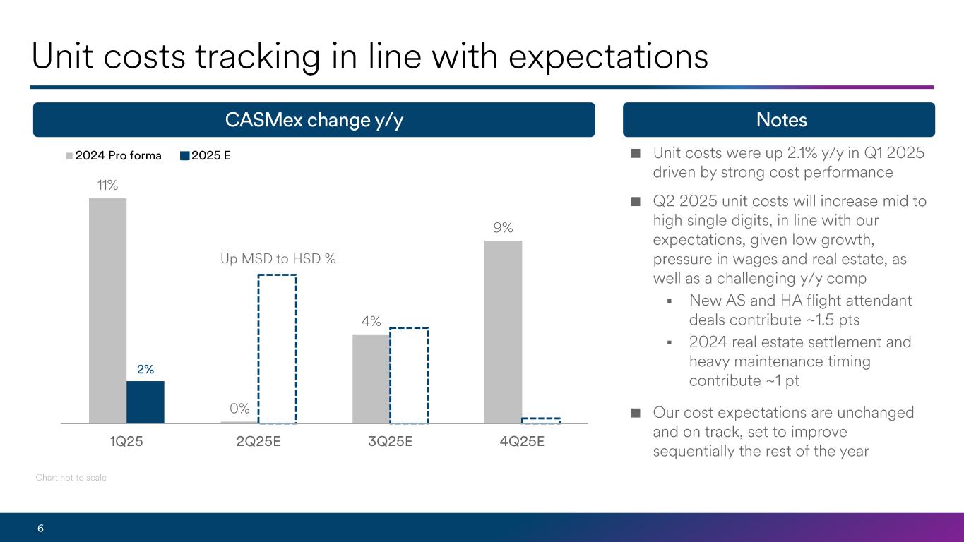 Unit costs increased 2.1% year-over-year. This cost performance is in line with our expectations, and inclusive of the new Alaska flight attendant contract, which was ratified in February. Economic fuel price per gallon was $2.61 in the first quarter, reflecting moderating crude oil prices offset by elevated West Coast refining margins.
