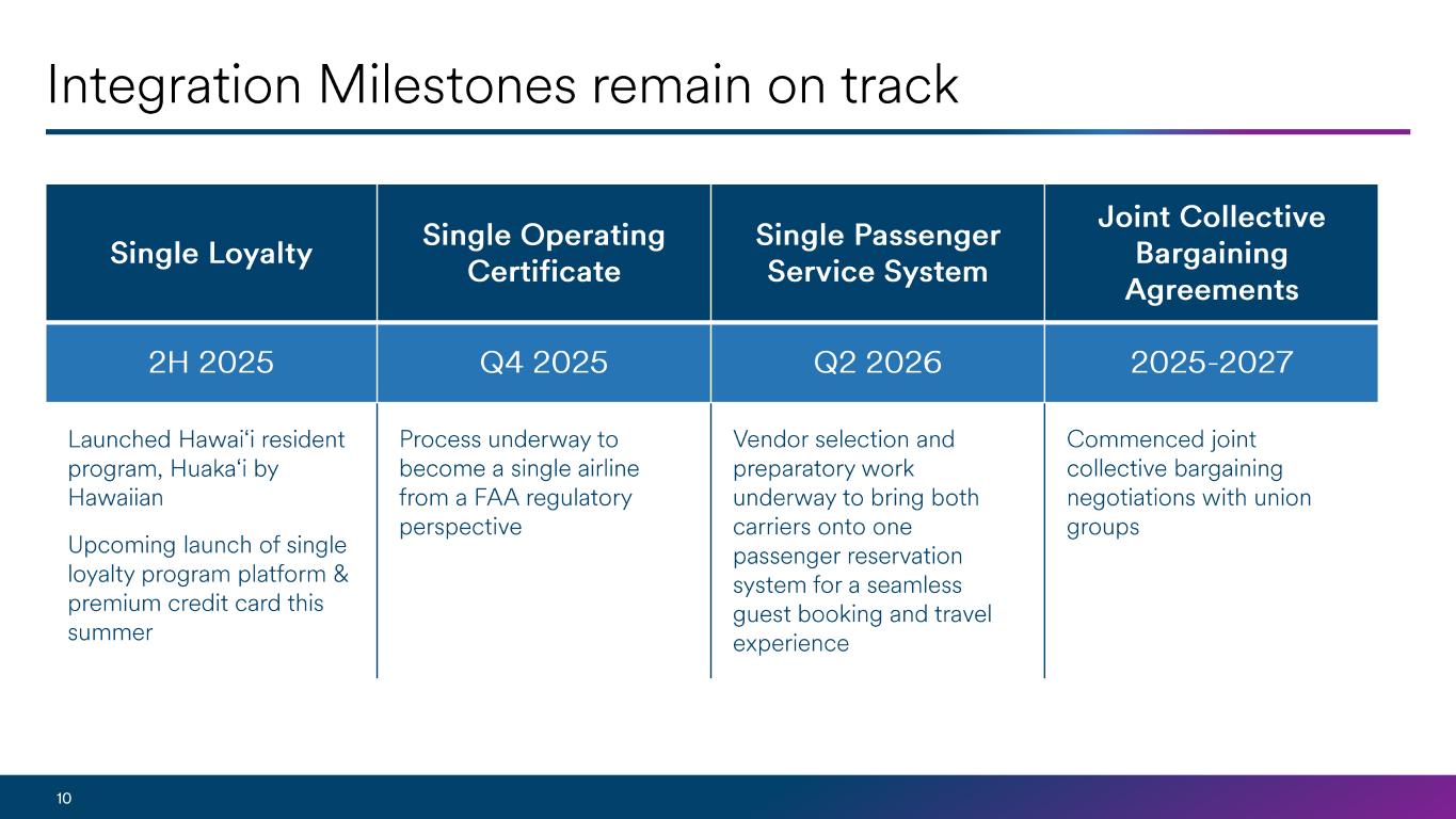 •Reported GAAP net loss for the first quarter of 2025 of $166 million, or $1.35 per share, which includes Hawaiian results, compared to net loss of $132 million, or $1.05 per share, for the first quarter of 2024, which does not include Hawaiian results.
