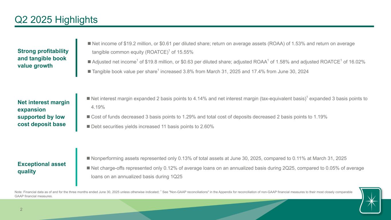 HBT Financial, Inc. Presentation of Results for the Second Quarter Ended June 30, 2025. |