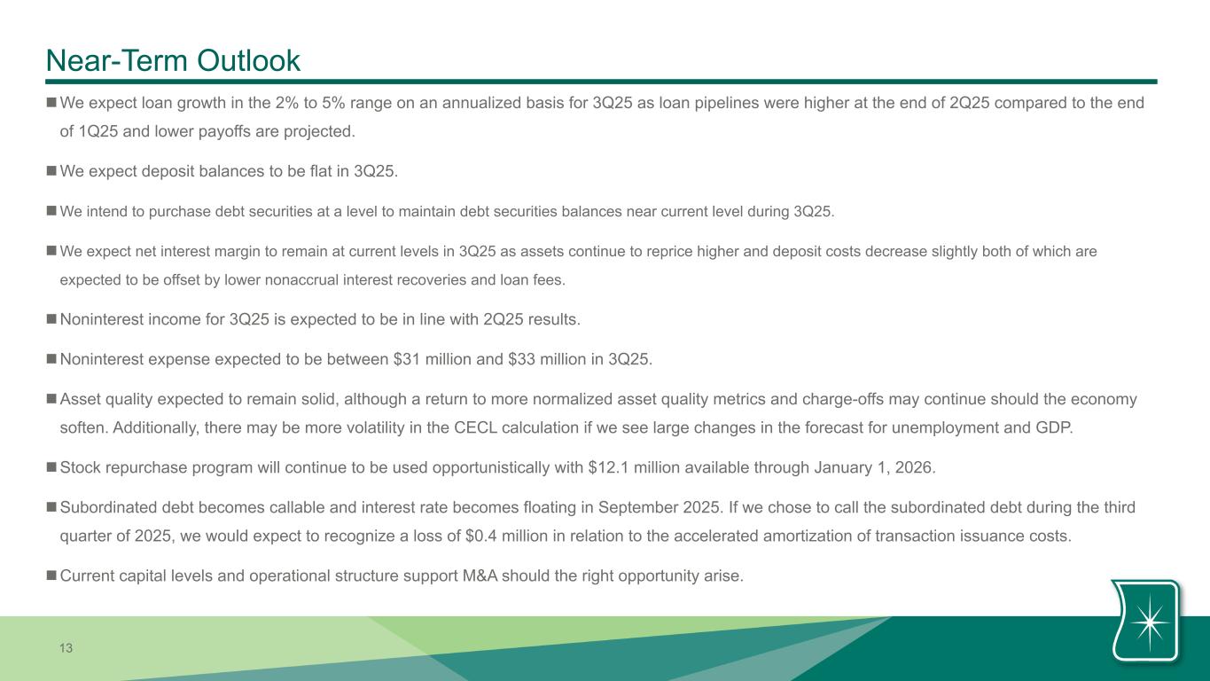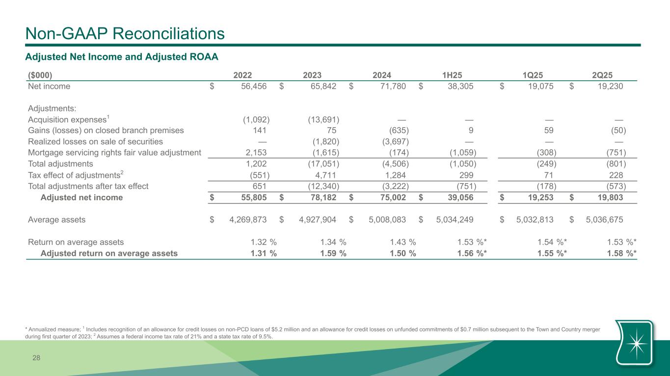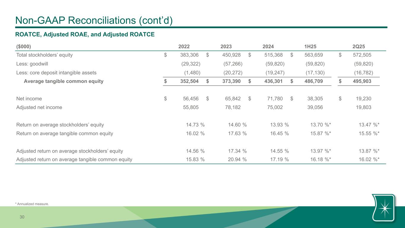 | Pre-provision net revenue less net charge-offs | $ | 25,837 | $ | 25,650 | $ | 25,443 | $ | 51,487 | $ | 46,696 | ||||||||||||||||||||||