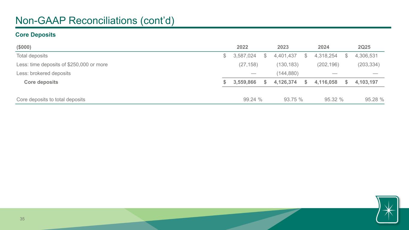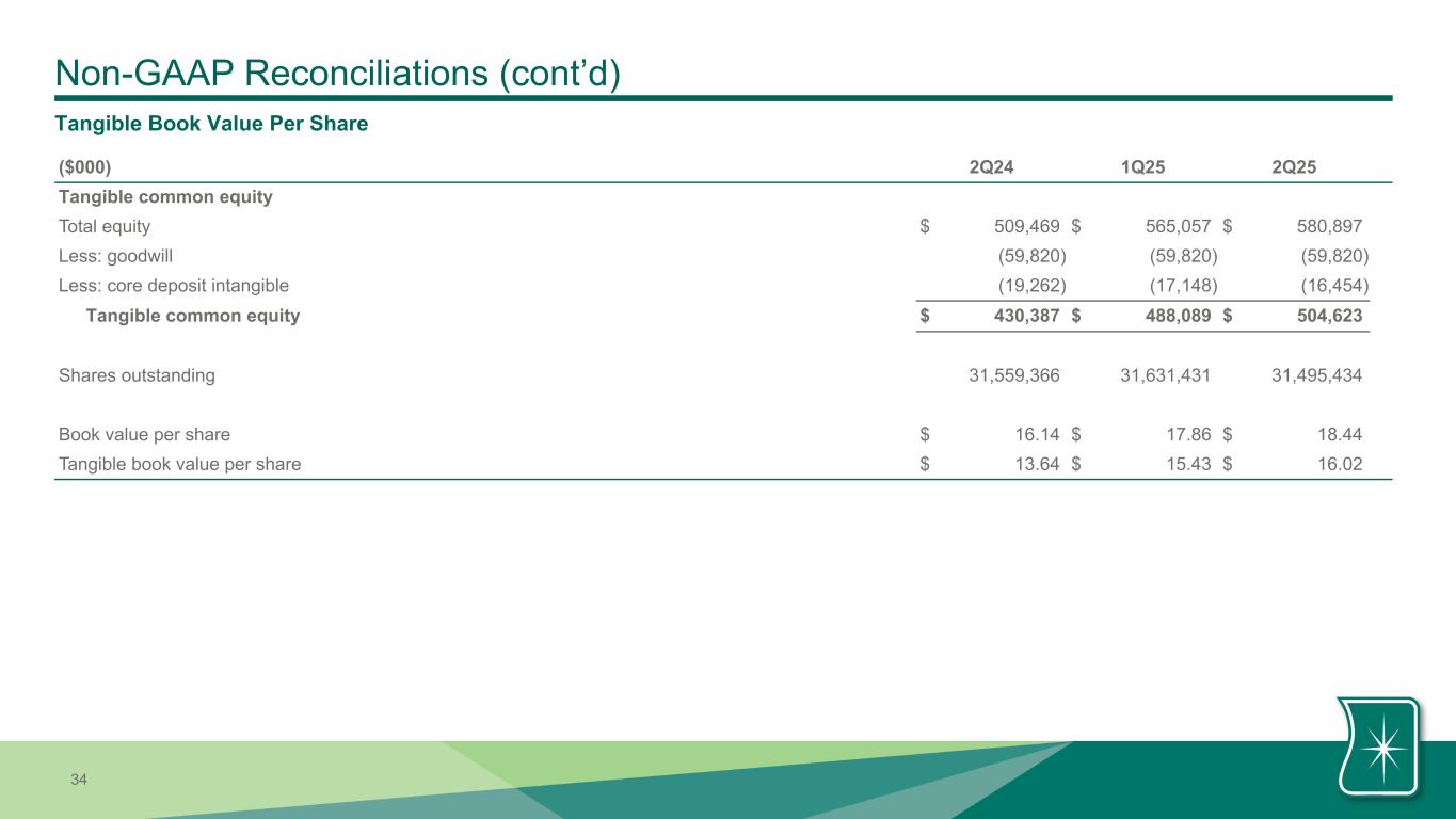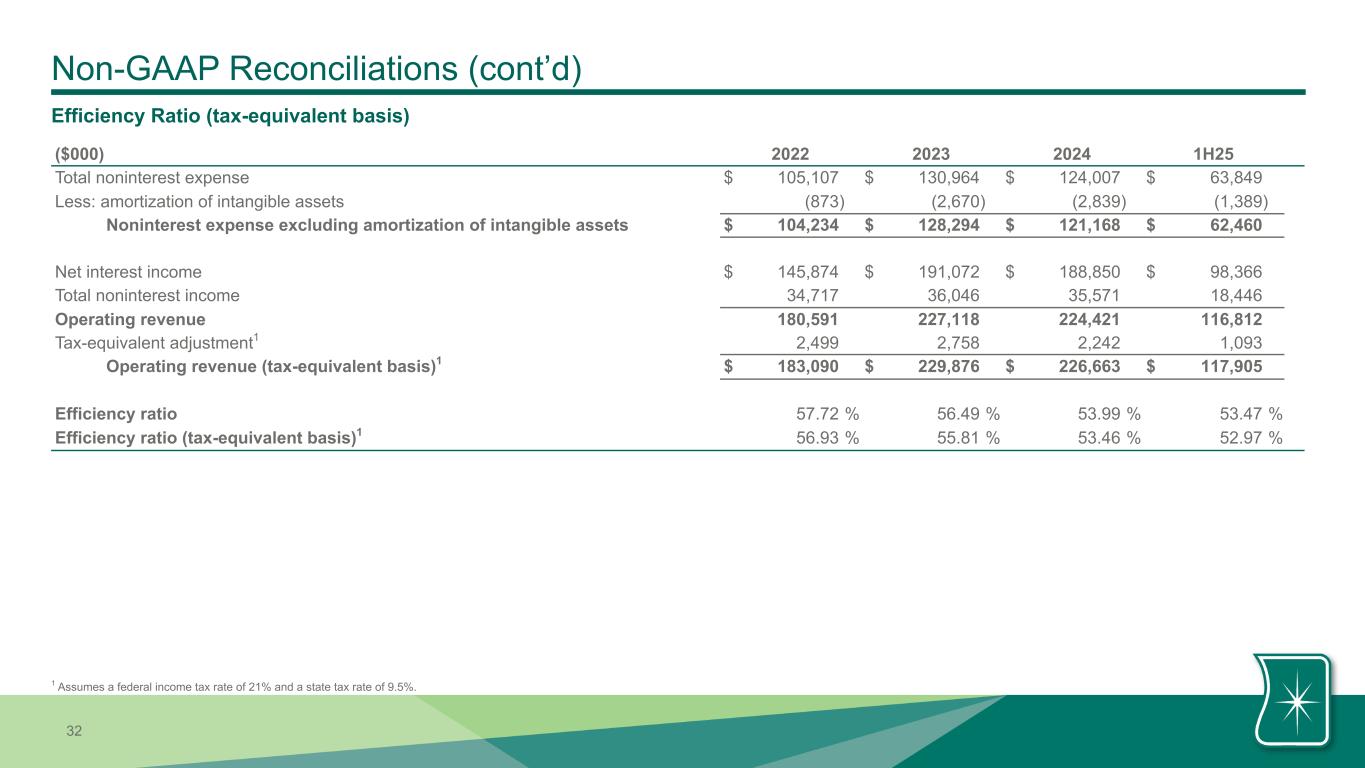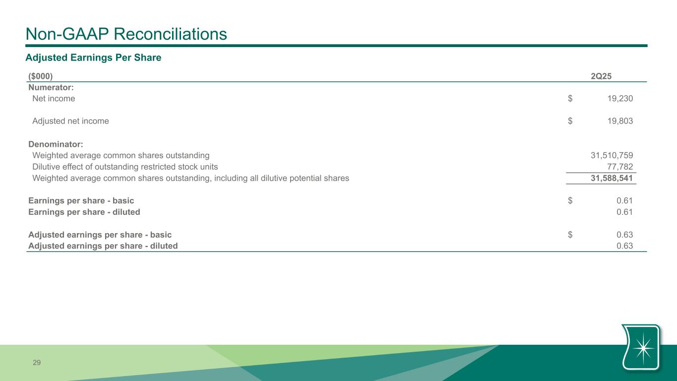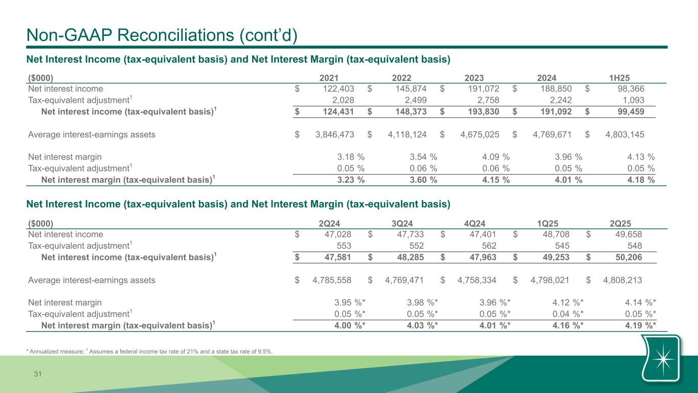 | Noninterest expense excluding amortization of intangible assets | $ | 31,220 | $ | 31,240 | $ | 29,799 | $ | 62,460 | $ | 60,357 | ||||||||||||||||||||||