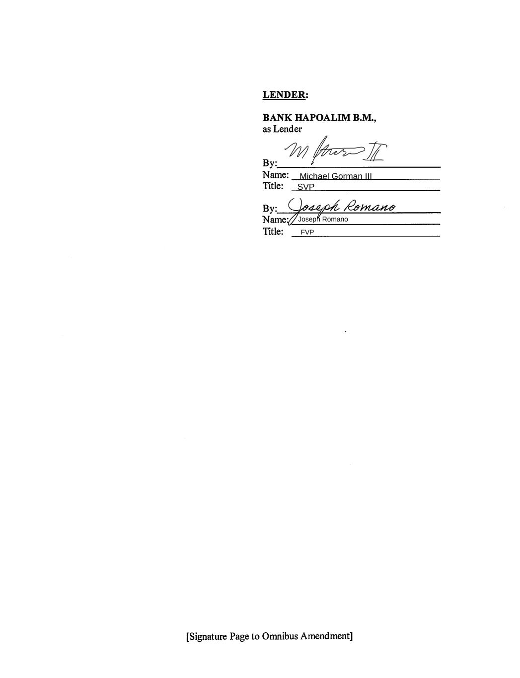Michael Gorman III SVP Joseph Romano FVP Joseph Romano