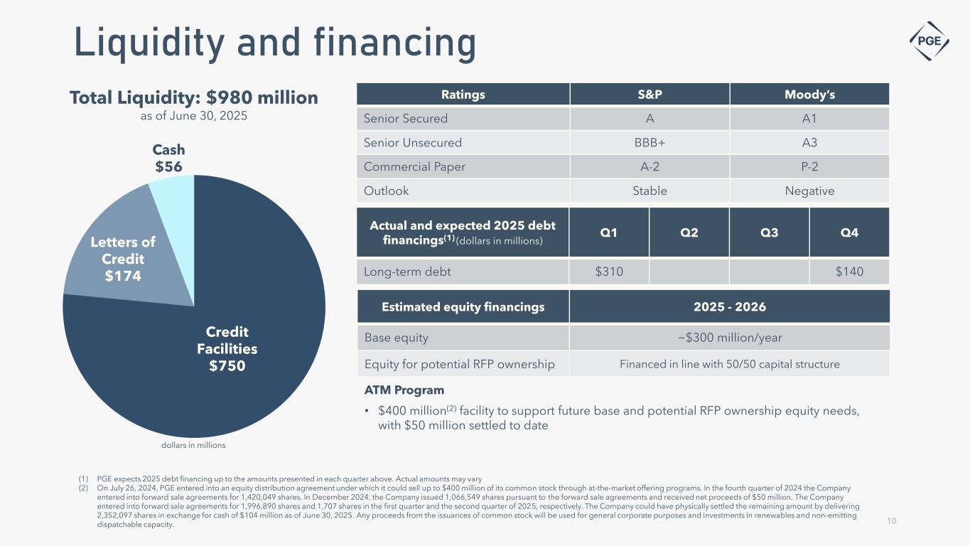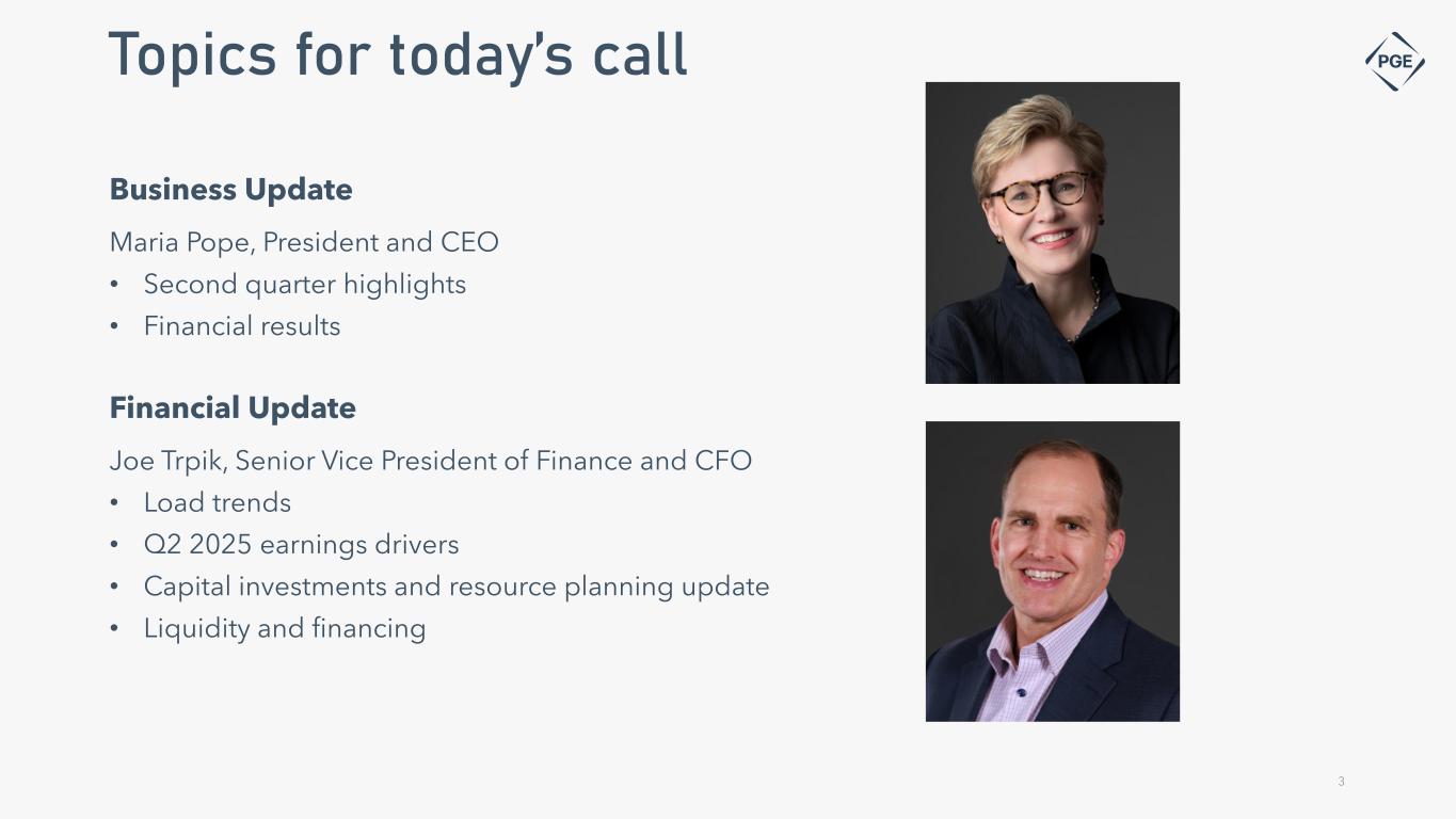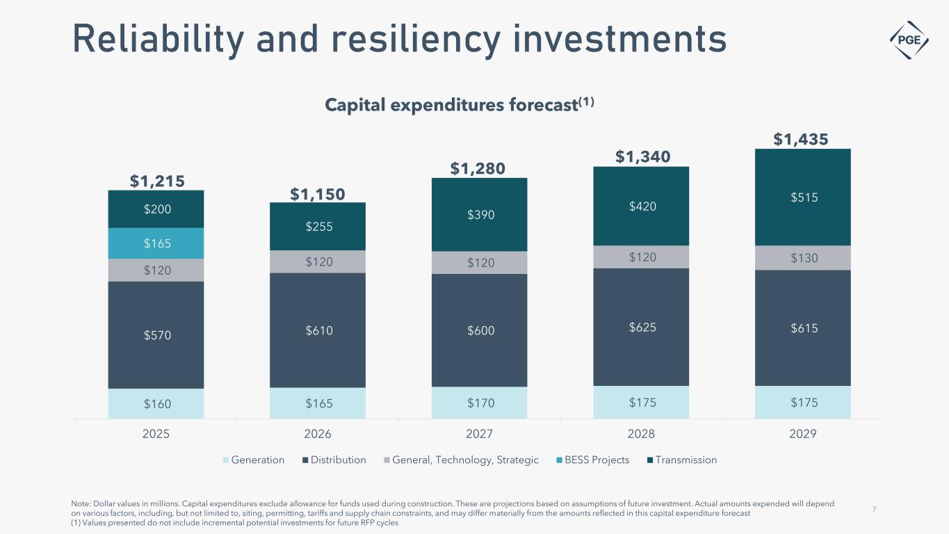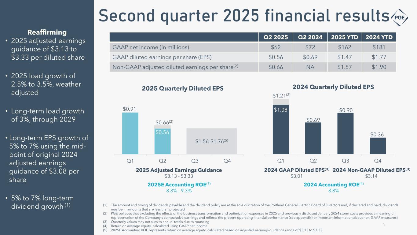 PGEは以下の前提に基づき、2025年度通期の調整後1株当たり利益ガイダンスを3.13~3.33ドルと再確認する: