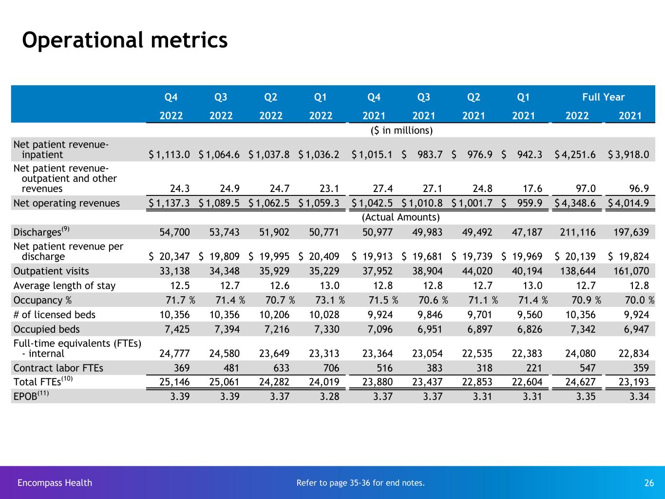 アラバマ州バーミンガム発 - 米国最大の入院リハビリテーション病院を所有・運営するエンコンパス・ヘルス・コーポレーション(NYSE:EHC)は本日、2022年12月31日に終了した第4四半期の業績について報告しました。