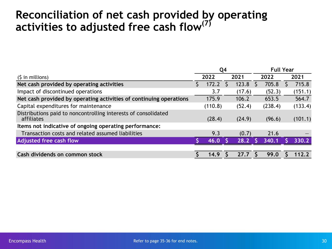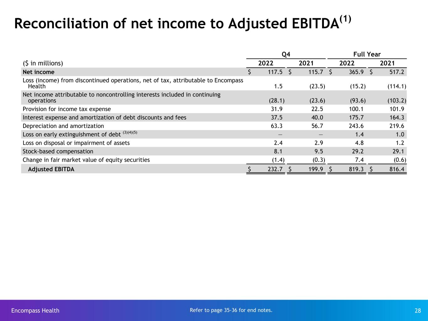 2022年7月1日、エンコンパス・ヘルス社は、エンハビット・ホームヘルス&ホスピス社(以下、エンハビット社)のスピンオフを完了させました。エンハビットの過去の業績は、エンコンパス・ヘルスの非継続事業として報告されています。