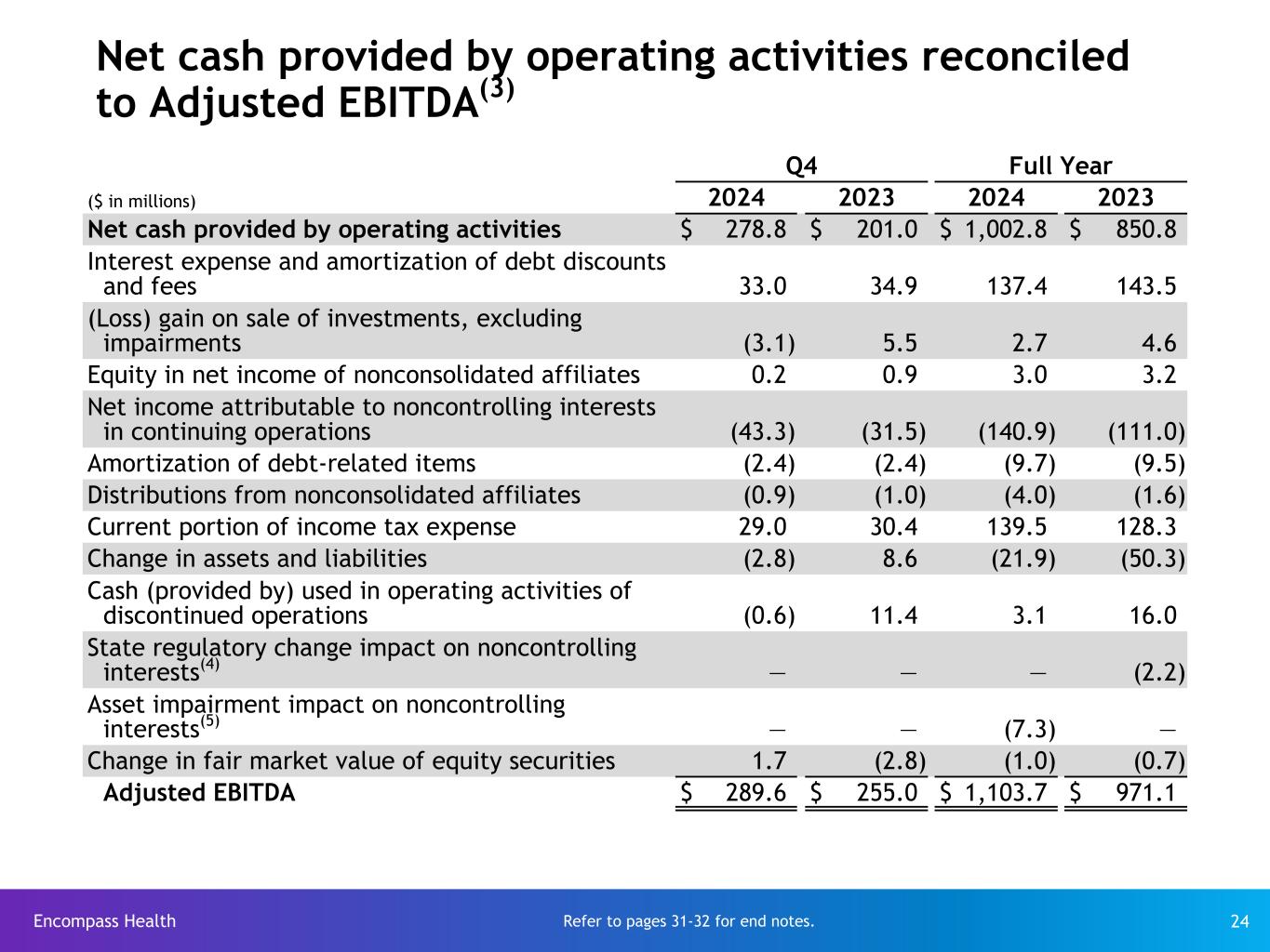 エンコンパス・ヘルスが2024年第4四半期の業績を発表