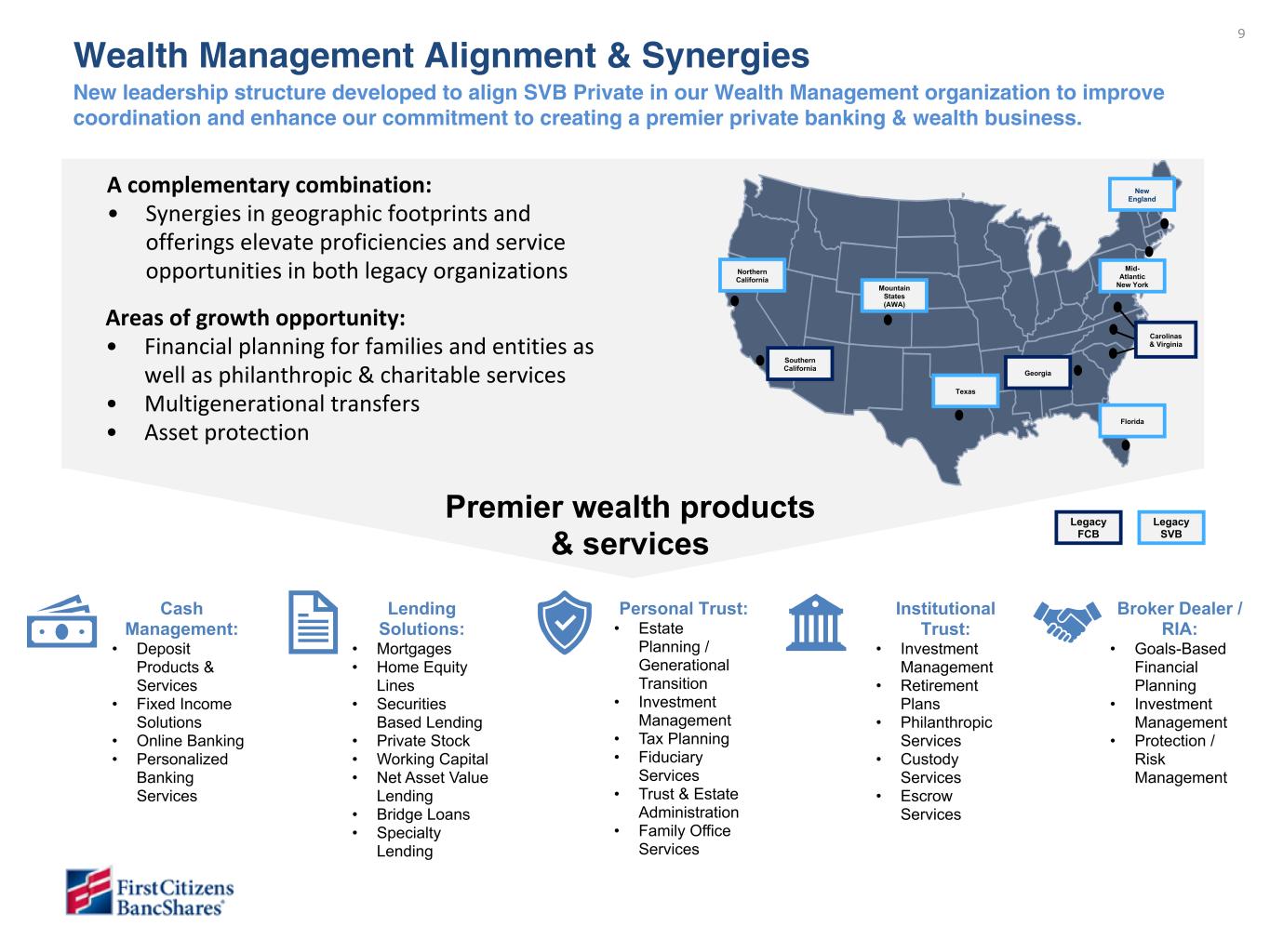 8 First Citizens is Committed to SVB and the Innovation Economy We remain fully committed to supporting our clients and the innovation economy and are well-positioned to help navigate these challenging market conditions. Committed to the innovation economy ▪ We launched a new nationwide advertising campaign ‘Yes, SVB’ intended to increase awareness of SVB’s continued presence, ongoing commitment, experienced team and leadership position helping investors and innovators scale and succeed. ▪ We continued to invest in the SVB business as demonstrated by the release of ‘SVB Go’ an online digital banking platform designed to support our clients needs by facilitating easier interactions. Trusted partner ▪ We remain a trusted partner to innovation clients as we have been for 40 years by providing banking services, debt-financing solutions and industry partnerships to companies and investors. ▪ Our partnerships stretch beyond our wide range of product offerings and include a collection of intangible knowledge based on our extensive experience that is critical for successful innovation companies. ▪ We facilitate committed partnership with our clients to promote better outcomes. State of the market ▪ Innovation economy fundraising activity remains muted as the dynamic macroeconomic environment leads to continued client cash burn and a decline in VC investment. ▪ VC dry powder remains elevated but capital deployment is likely to remain slow in the near-term. ▪ Capital markets have continued to be volatile in 2023 reducing exit values and leading many companies to postpone public offerings. Robust, resilient markets ▪ We remain confident in the long-term growth opportunity of the innovation economy. ▪ We believe the innovation economy is better-positioned today to weather a downturn than in past cycles. ▪ As we have seen in prior slowdowns in the exit markets, including the early 2000s, the Global Financial Crisis, early 2016 and 2022, a slowdown period typically lasts 12-18 months as VC/PE firms historically jumped in to take advantage of depressed private company valuations.