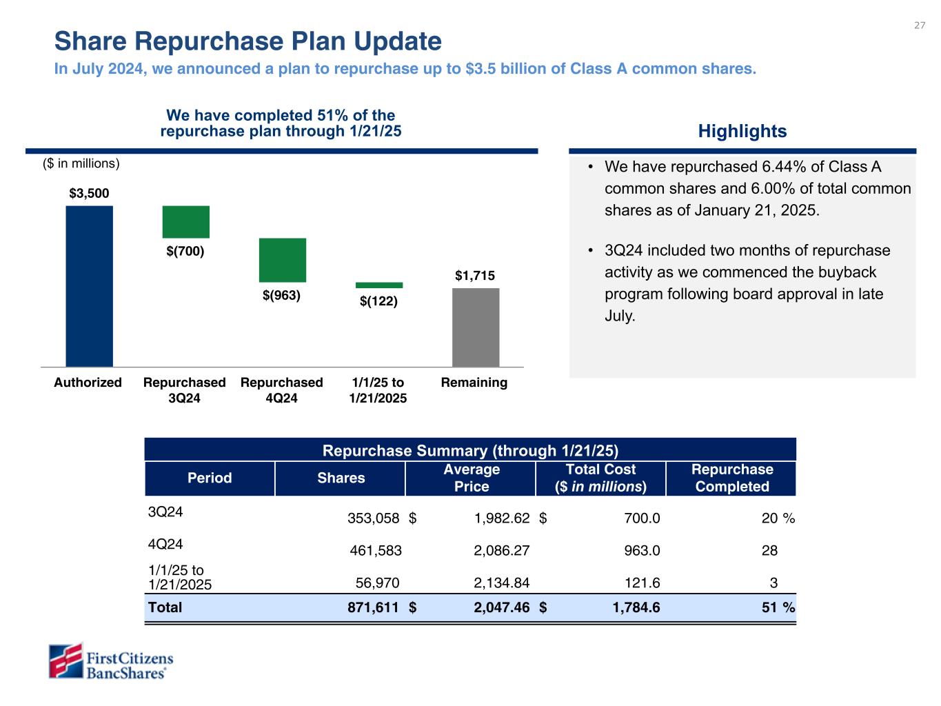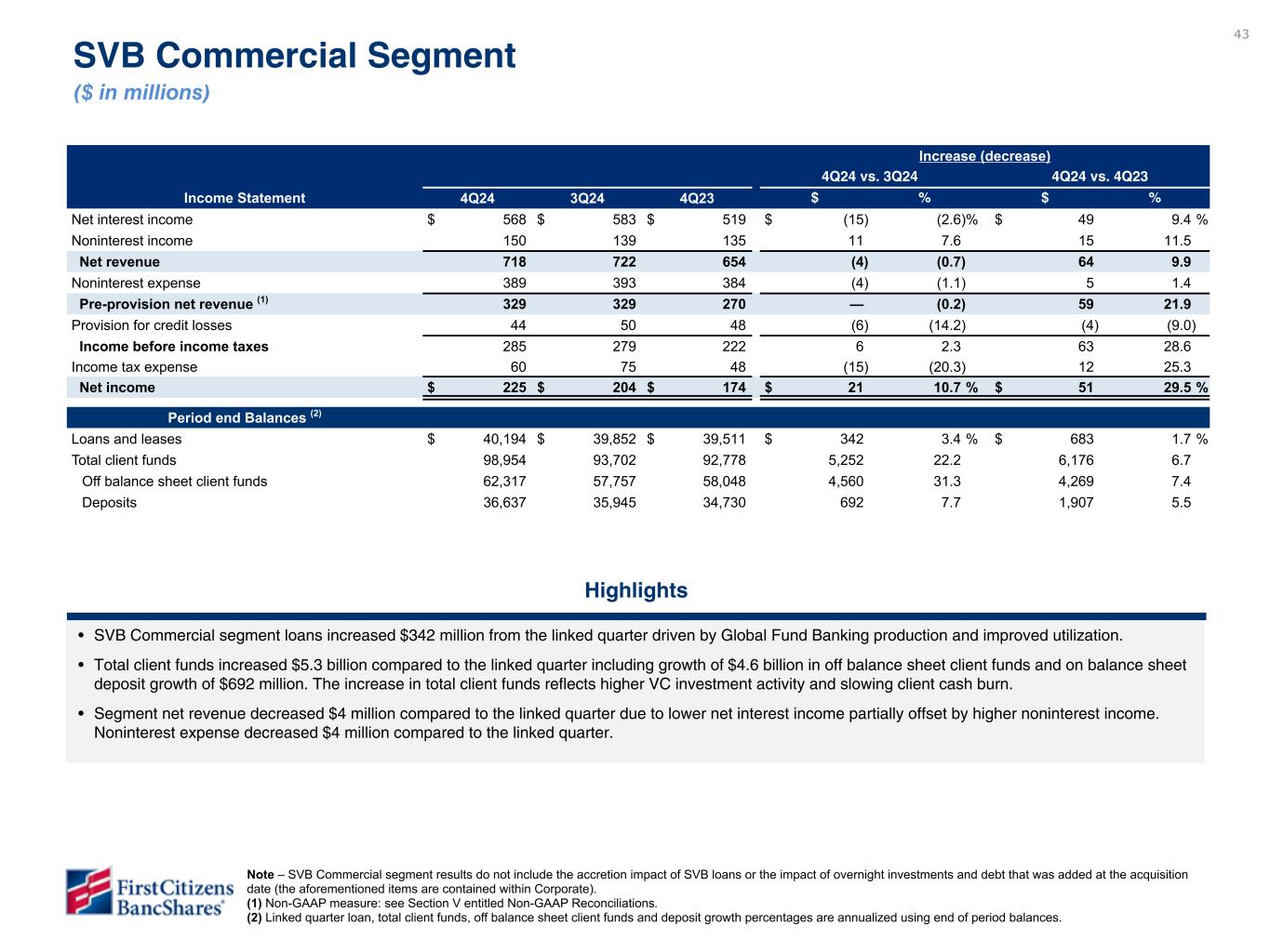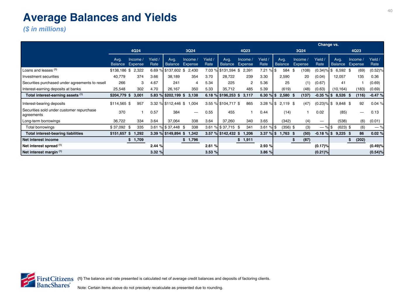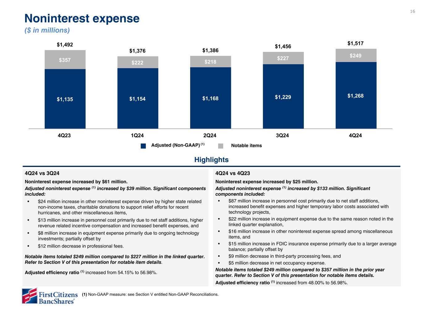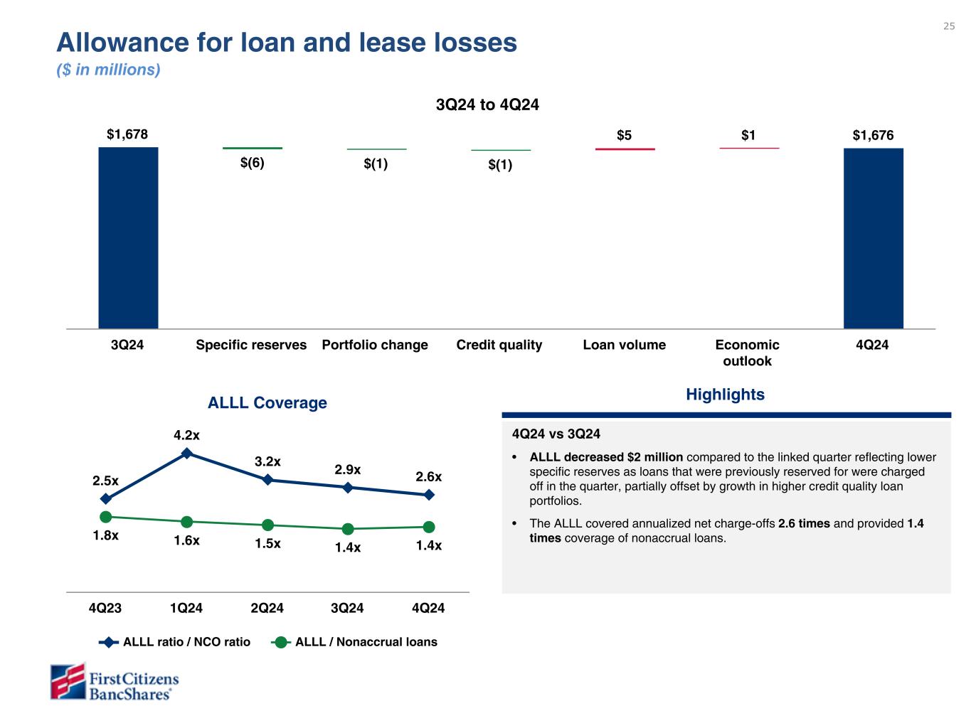以下の「調整後」または「PAA(またはパーチェス会計に伴う付加価値)を除く」は非GAAPベースの財務指標です(各非GAAPベースの財務指標と最も直接的に比較可能なGAAPベースの財務指標との調整については、ir.firstcitizens.comまたはwww.sec.gov で入手可能な財務補足資料をご参照ください)。