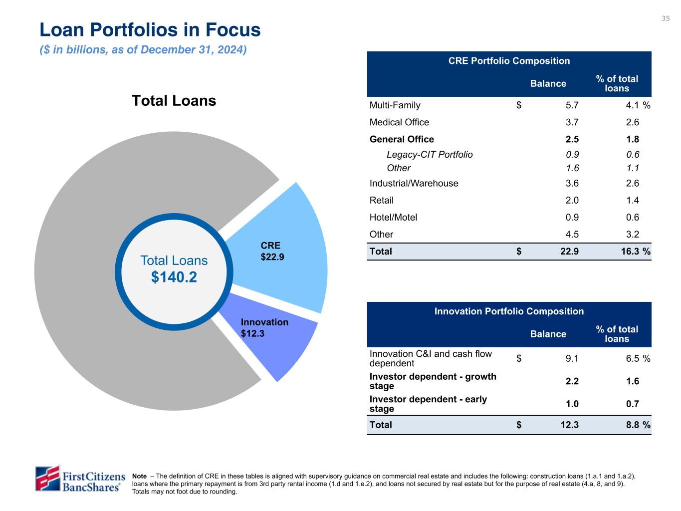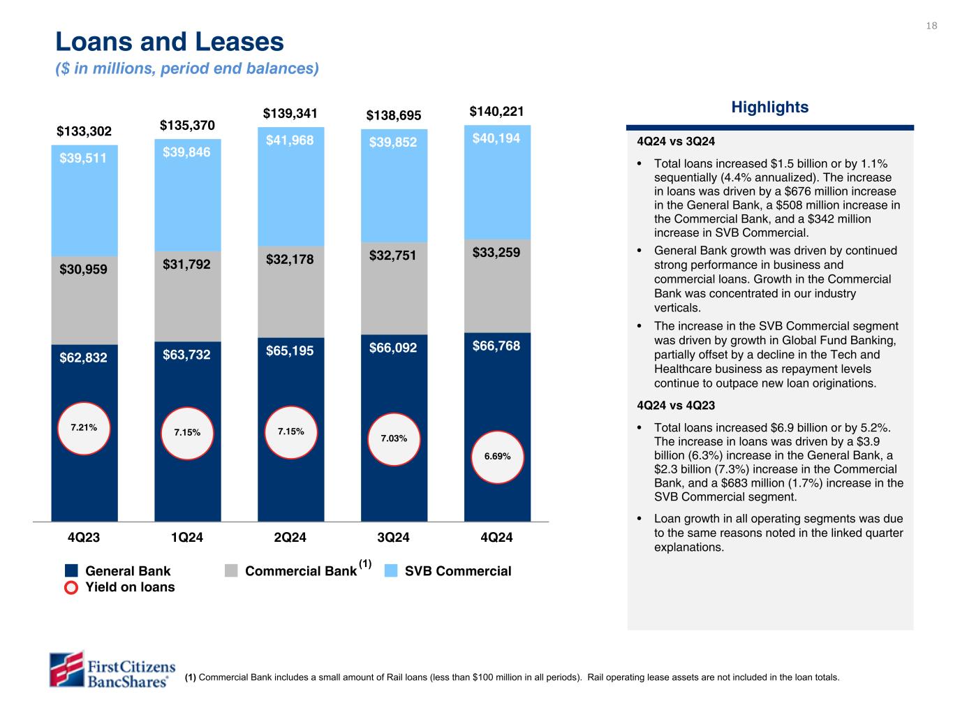 -2024年12月31日現在のローンおよびリースの総額は1,402億2,000万ドルで、2024年9月30日現在の1,387億ドルから15億3,000万ドル(年率4.4%)増加した。貸出金の増加は以下の要因によるものである: