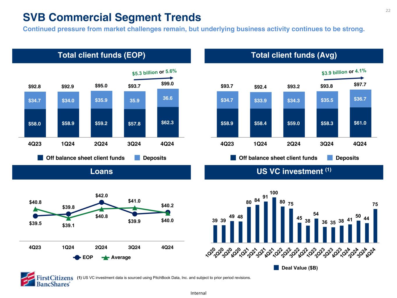 SVB商業部門の預金は、主に利付当座預金および短期金融市場預金の増加により、6億9200万ドル増加した。