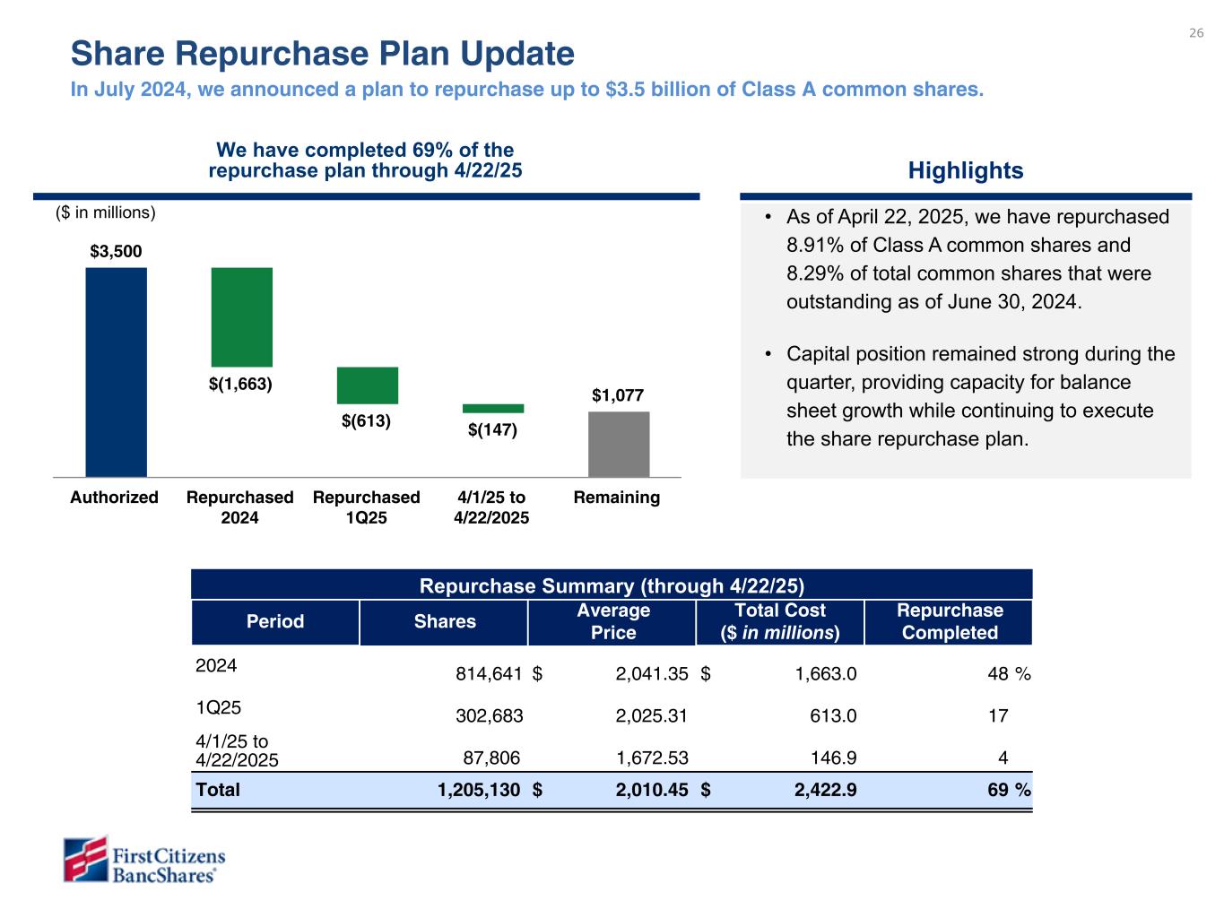 First Citizens BancShares, Inc. First Quarter 2025 Earnings Conference Call April 24, 2025