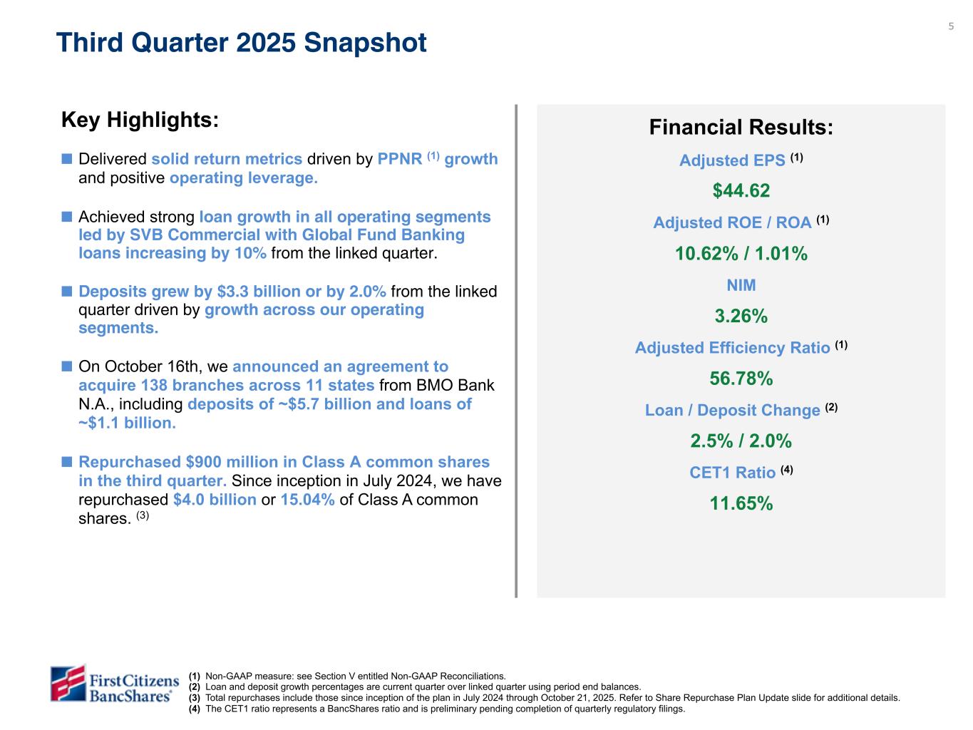 First Citizens BancShares, Inc. Third Quarter 2025 Earnings Conference Call October 23, 2025 DRAFT Data as of 10/17/2025 and contains Restricted Data