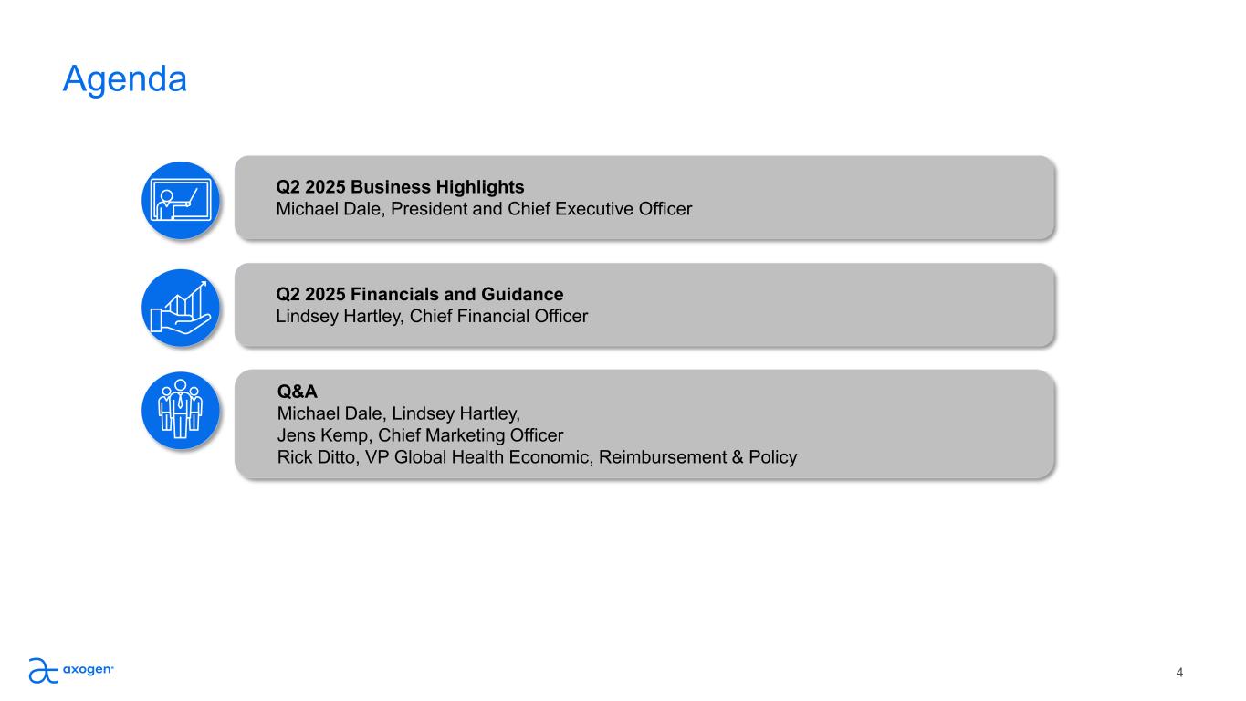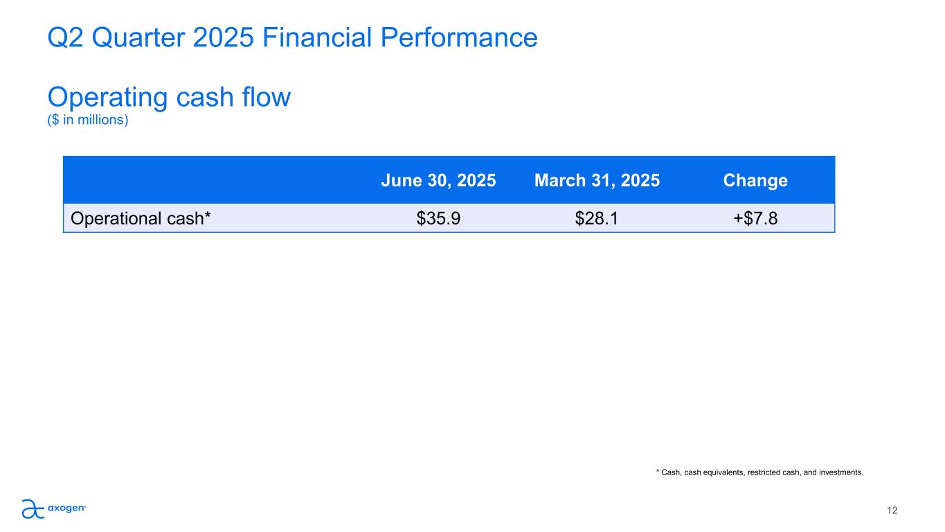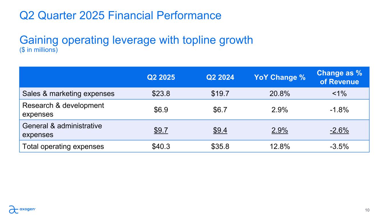 「2025 年第 2 四半期の業績と、戦略的計画の実施に向けたこれまでの進捗を喜ばしく思います。アクソジェン社のマイケル・デール最高経営責任者(CEO)兼取締役は、次のようにコメントしています。「当社の神経修復ソリューションの全領域にわたる力強い収益の伸びは、当社の市場開発戦略の健全性と商業的実行の強さと規律を反映しています。「上半期を終えて、市場開発目標とビジネスモデルの最適化計画は、末梢神経機能の回復を期待される標準治療とすることで、健康を回復し、生活の質を向上させるという当社の事業目的を推進するための正しい優先事項であると確信しています。