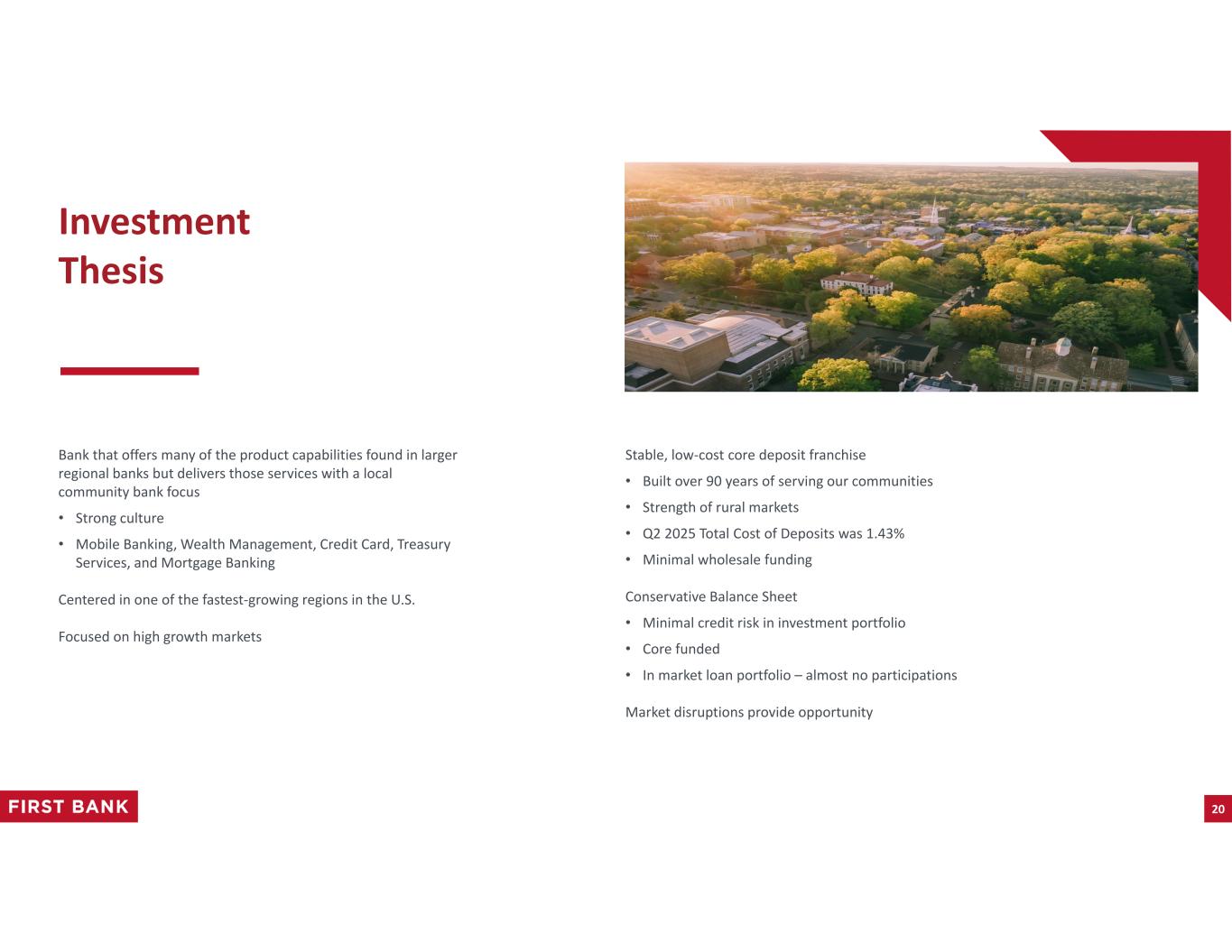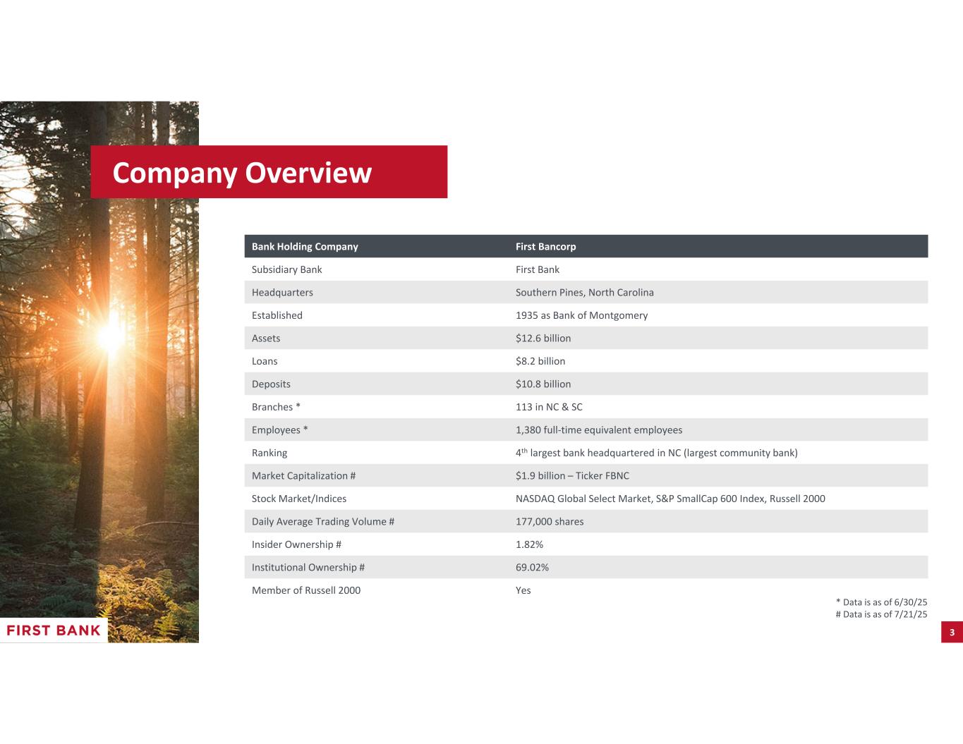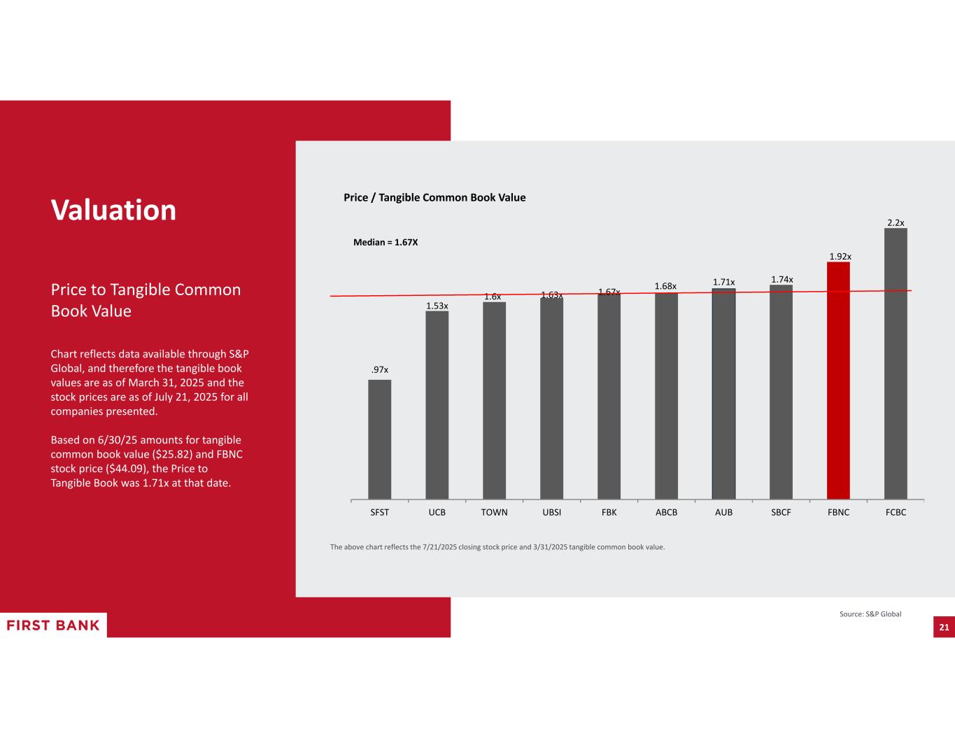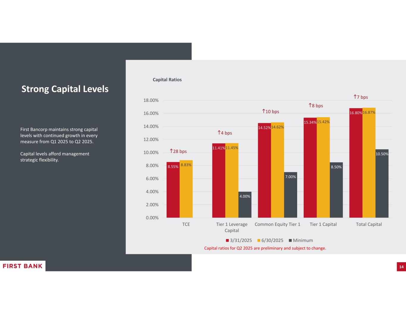•Total loan yield expanded to 5.53%, up 1 basis point from the linked quarter and 3 basis points from the like quarter. Total cost of funds contracted 3 basis points to 1.48% for the quarter ended June 30, 2025 from 1.51% for the linked quarter and from 1.81% for the like quarter.