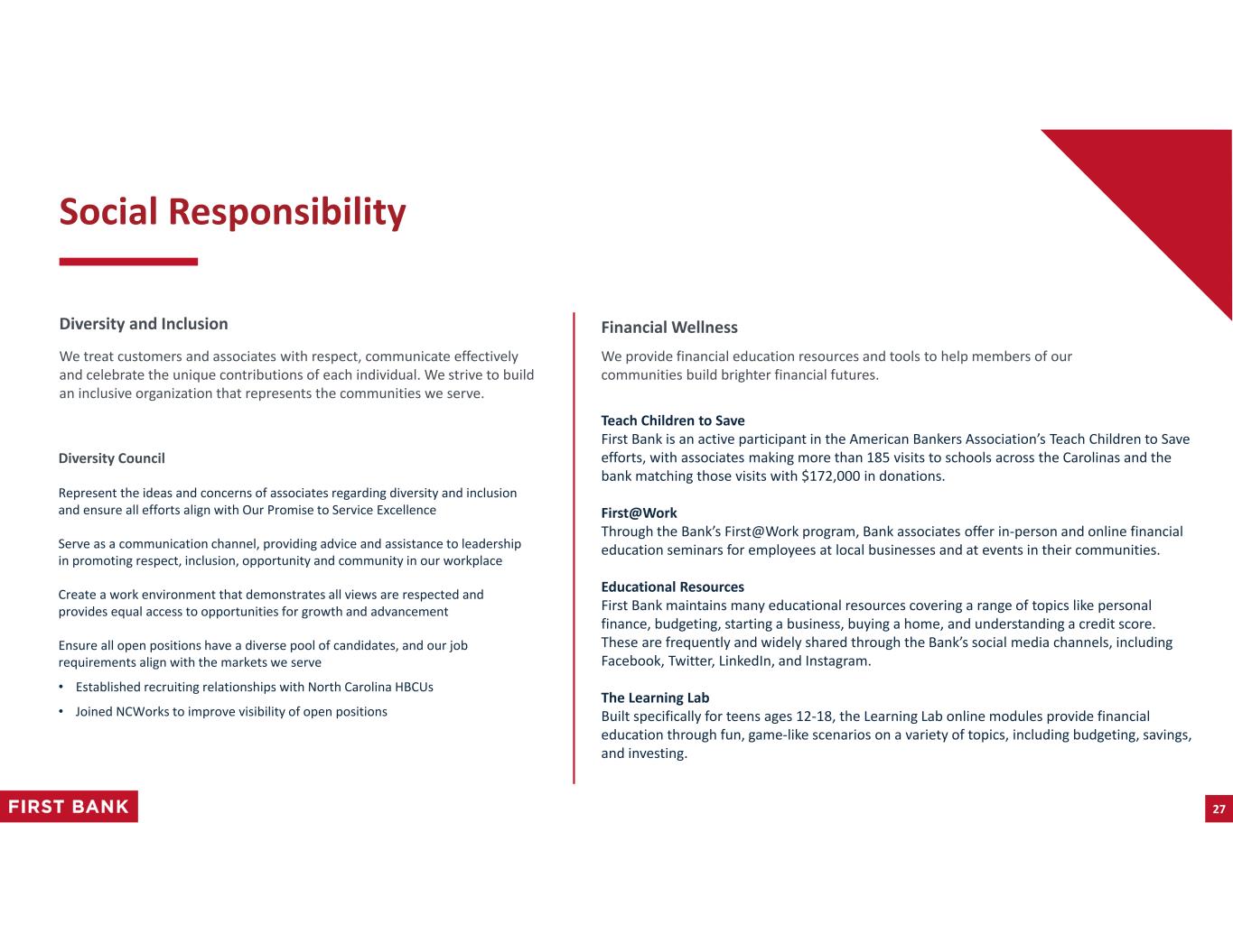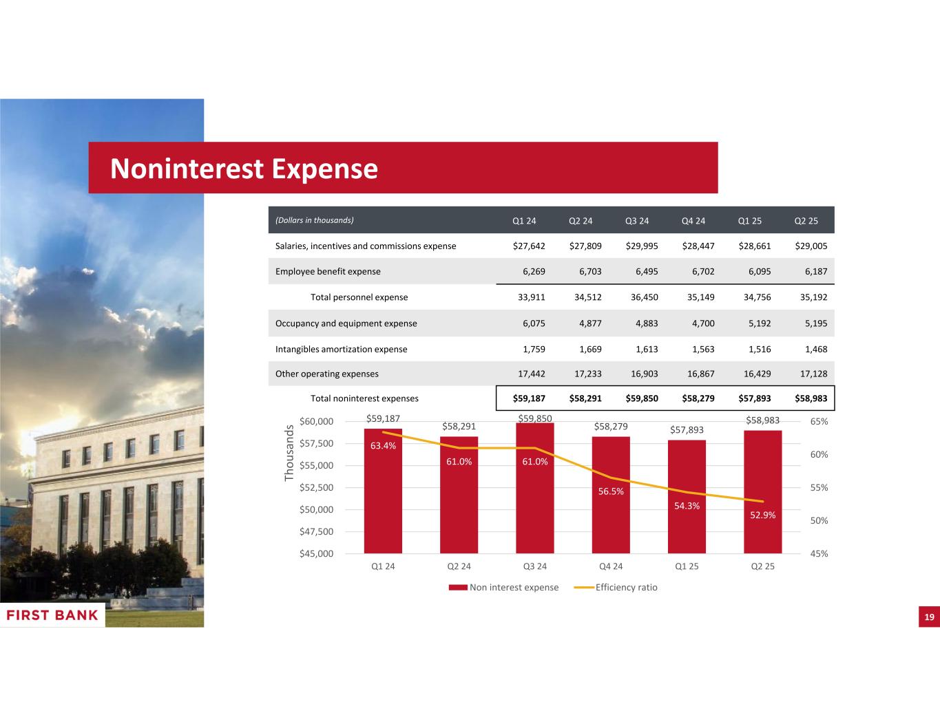 •We continue to focus on expense management. Noninterest expenses of $59.0 million represented a $1.1 million increase from the linked quarter and $0.7 million from the like quarter. The linked quarter increase was driven by a $0.7 million increase in Other operating expenses and a $0.4 million increase in Total personnel expense.