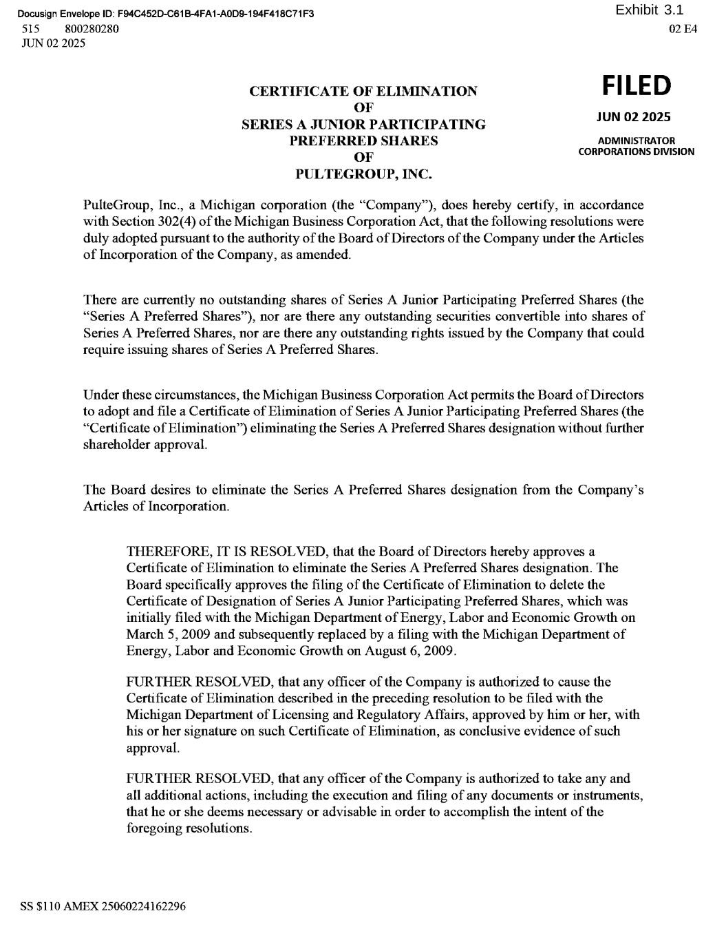 EX-3.1 - CERTIFICATE OF ELIMINATION