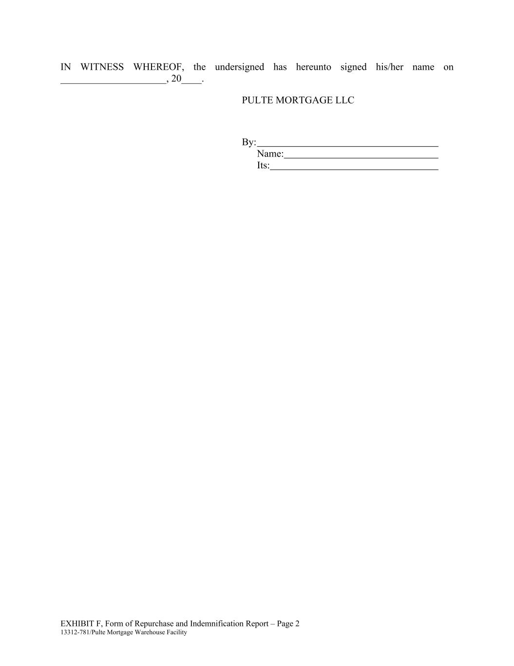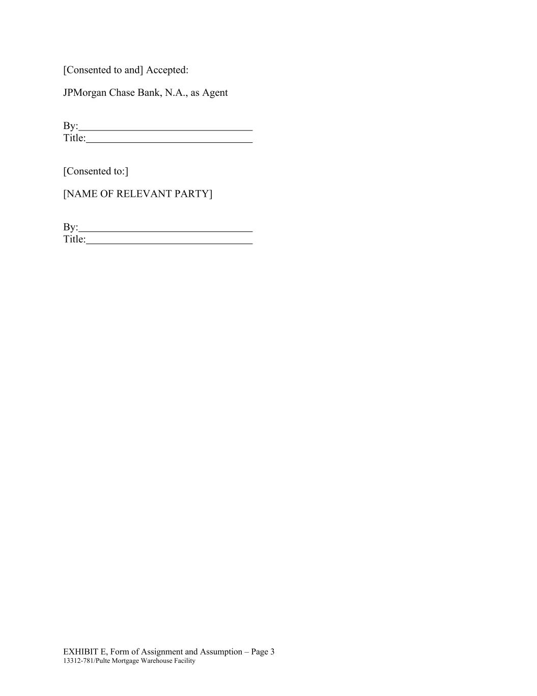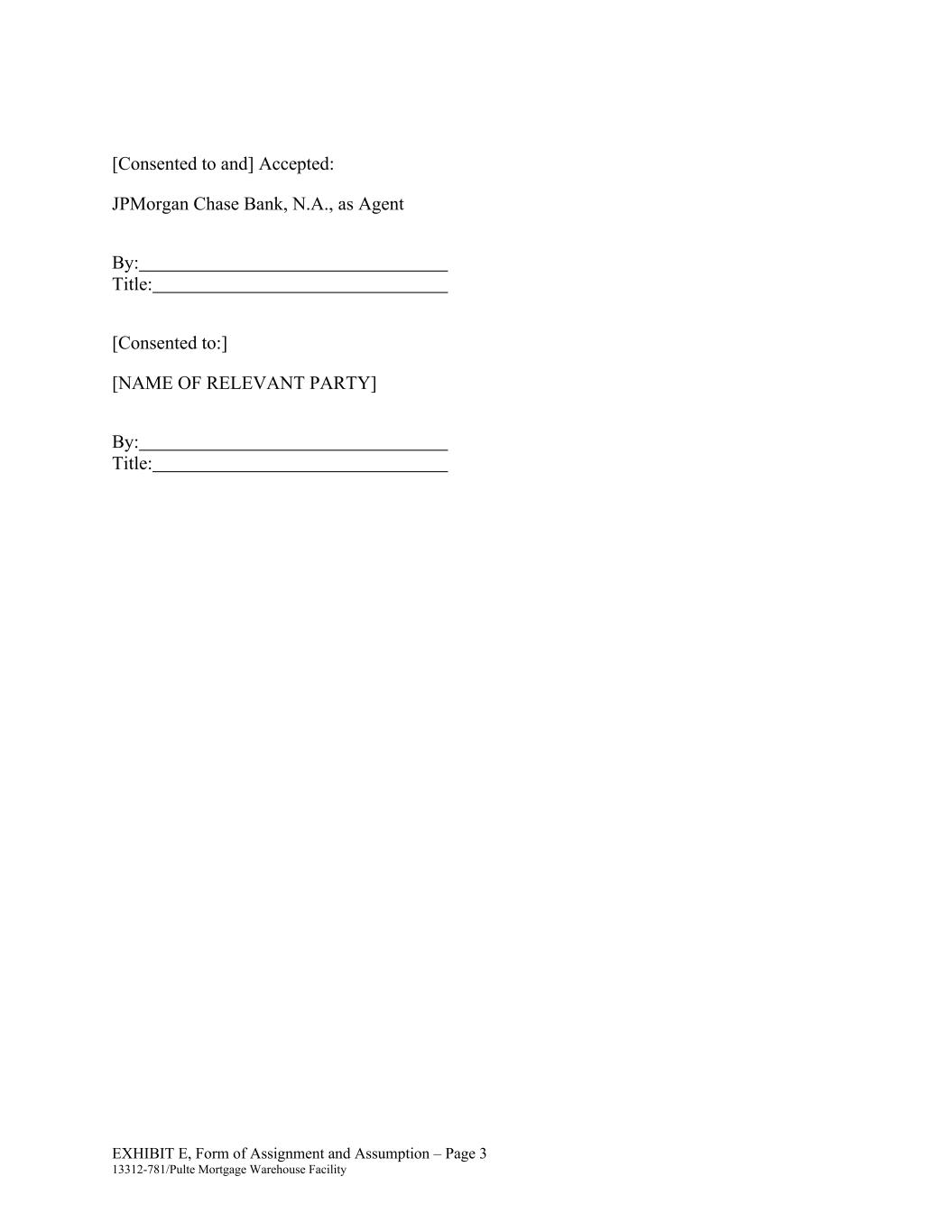 AMENDMENT NO. 3 TO MASTER REPURCHASE AGREEMENT – Signature Page 13312-781/Pulte Mortgage Warehouse Facility IN WITNESS WHEREOF, the parties have caused their names to be duly signed to this Amendment by their respective officers thereunto duly authorized, all as of the date first above written. JPMORGAN CHASE BANK, N.A., a national banking association, as Agent, Lead Arranger and a Buyer By: \s\ Annie Sun Name: Annie Sun Title: Vice President