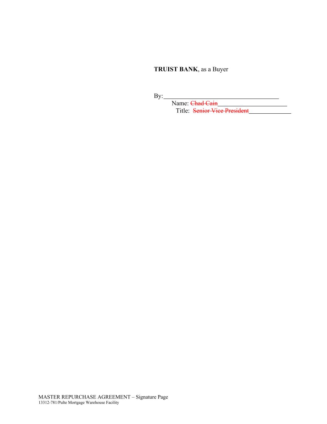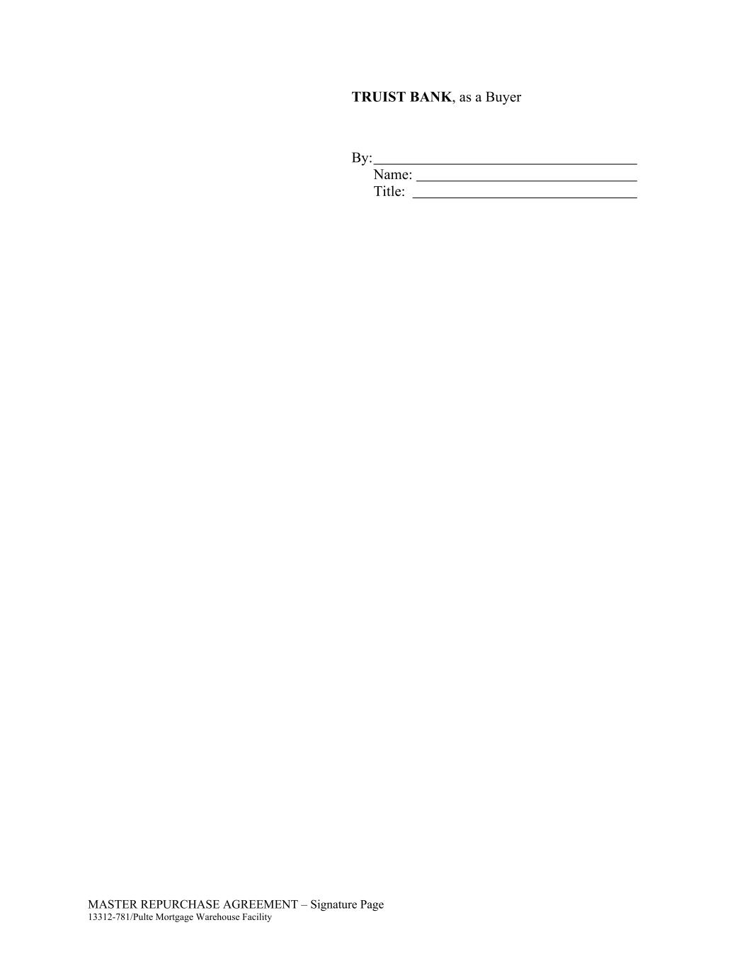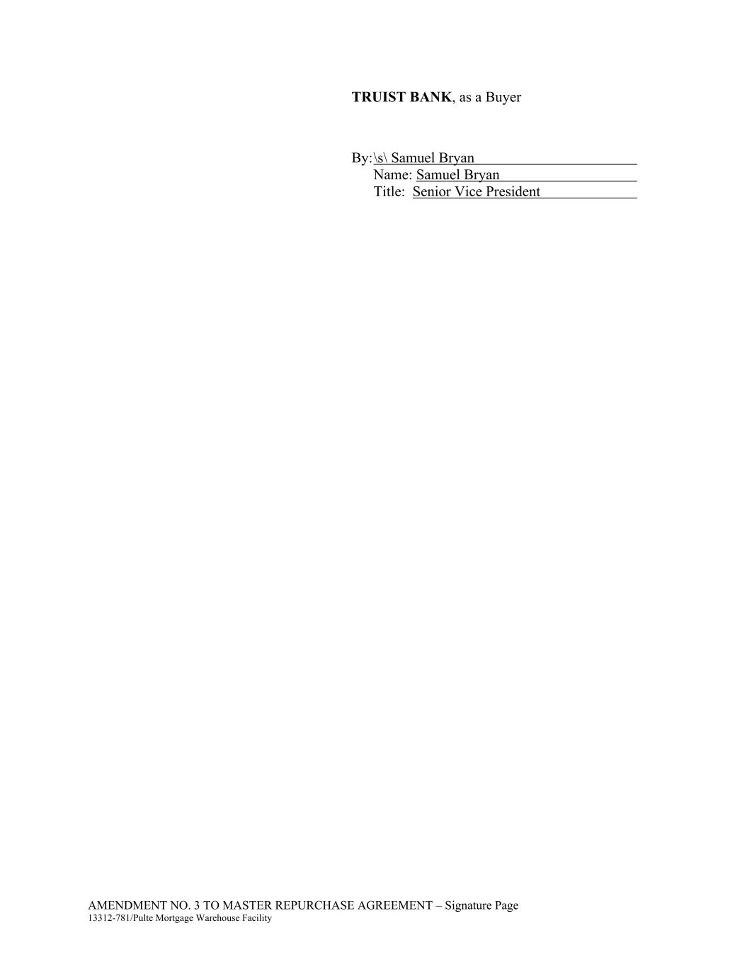 AMENDMENT NO. 3 TO MASTER REPURCHASE AGREEMENT – Signature Page 13312-781/Pulte Mortgage Warehouse Facility TRUIST BANK, as a Buyer By: \s\ Samuel Bryan Name: Samuel Bryan Title: Senior Vice President