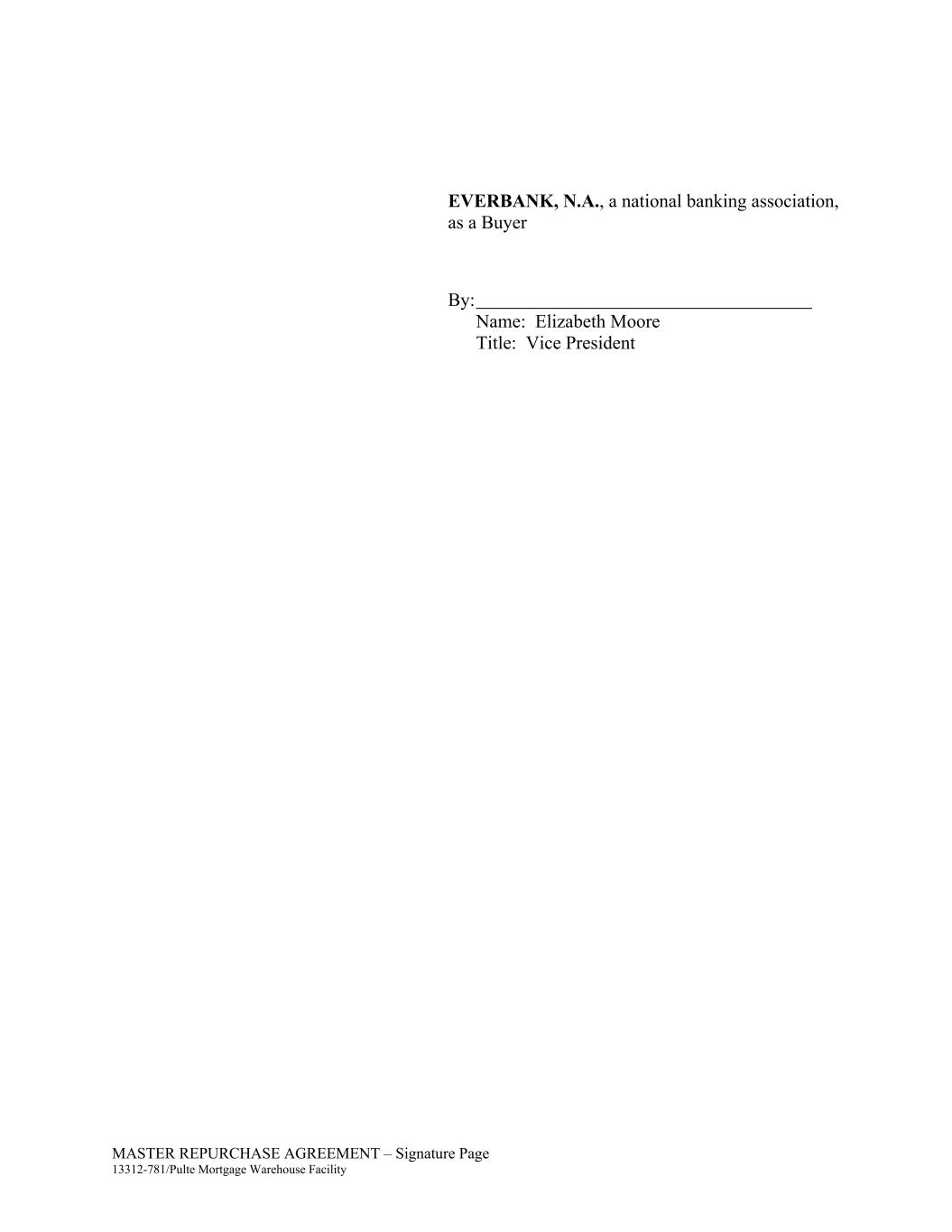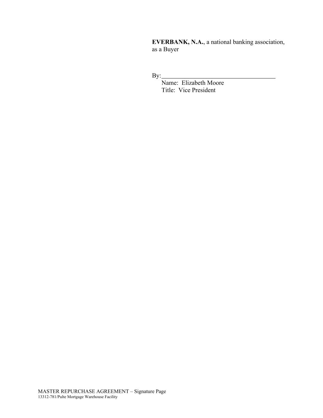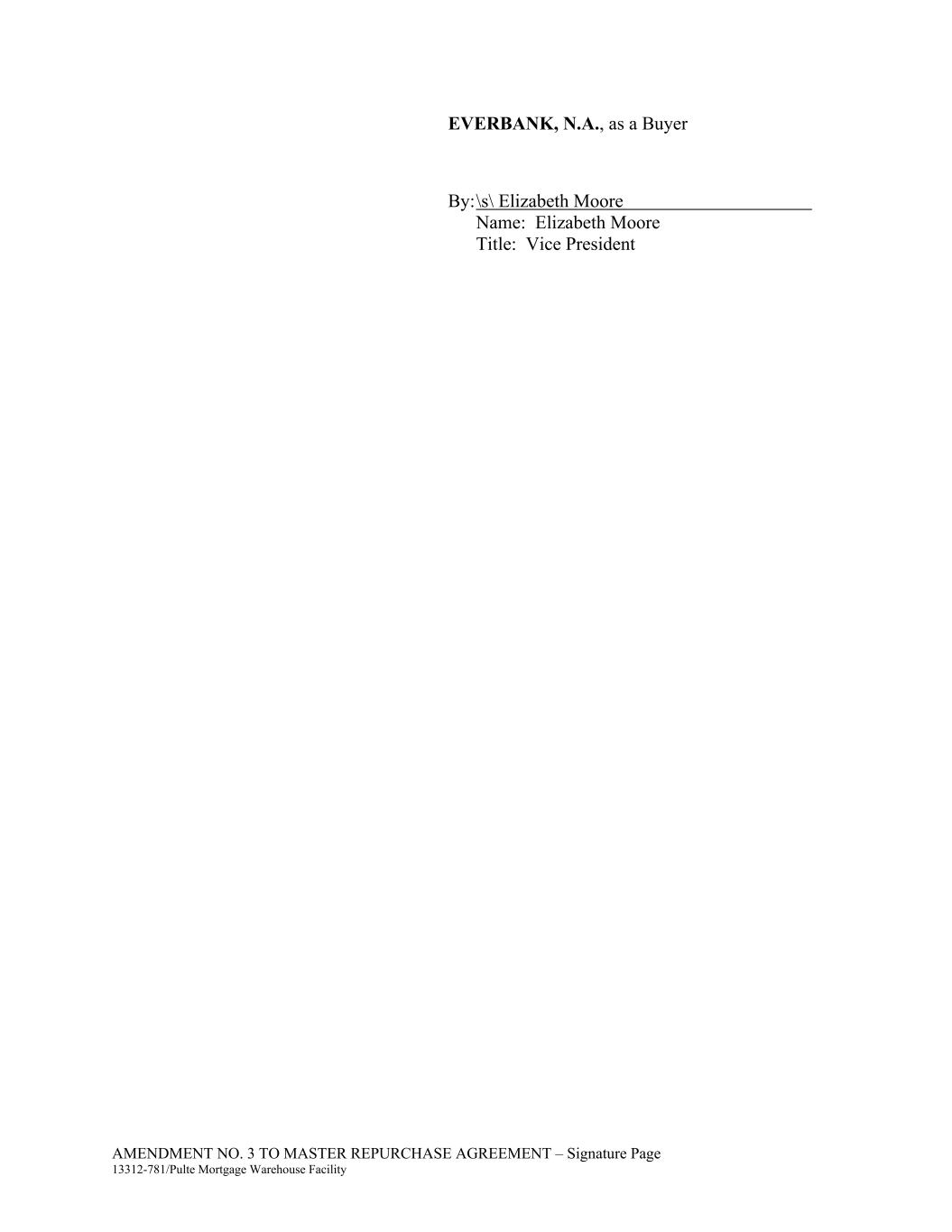 AMENDMENT NO. 3 TO MASTER REPURCHASE AGREEMENT – Signature Page 13312-781/Pulte Mortgage Warehouse Facility EVERBANK, N.A., as a Buyer By: \s\ Elizabeth Moore Name: Elizabeth Moore Title: Vice President