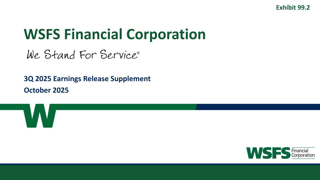 Wilmington, DE — WSFS Financial Corporation (Nasdaq: WSFS), the parent company of WSFS Bank, today announced its financial results for the third quarter of 2025.