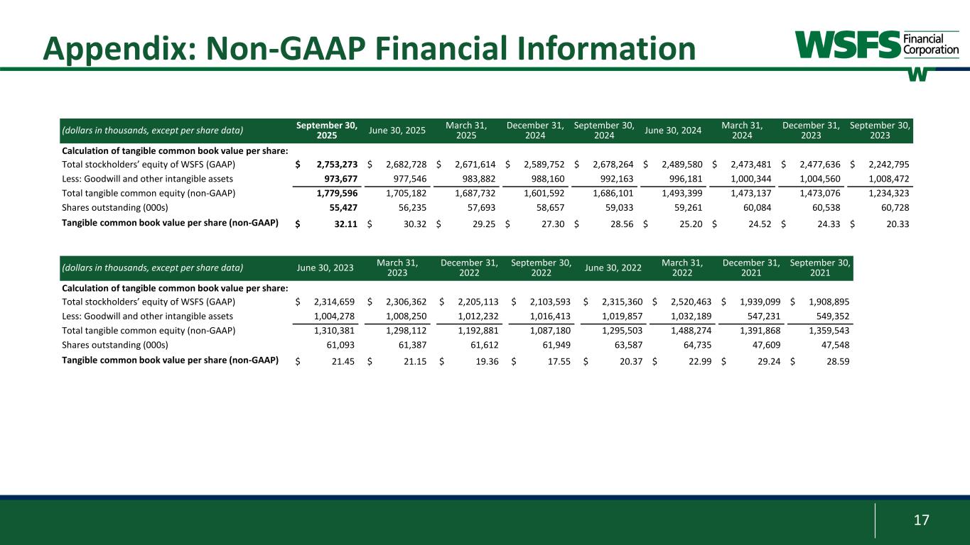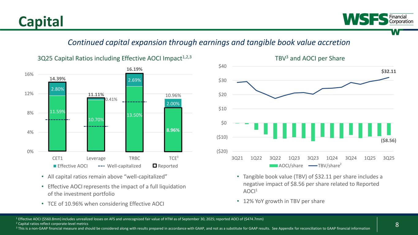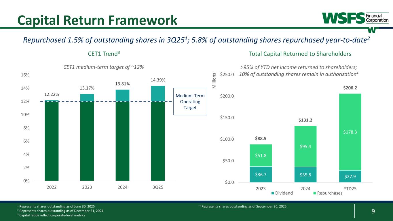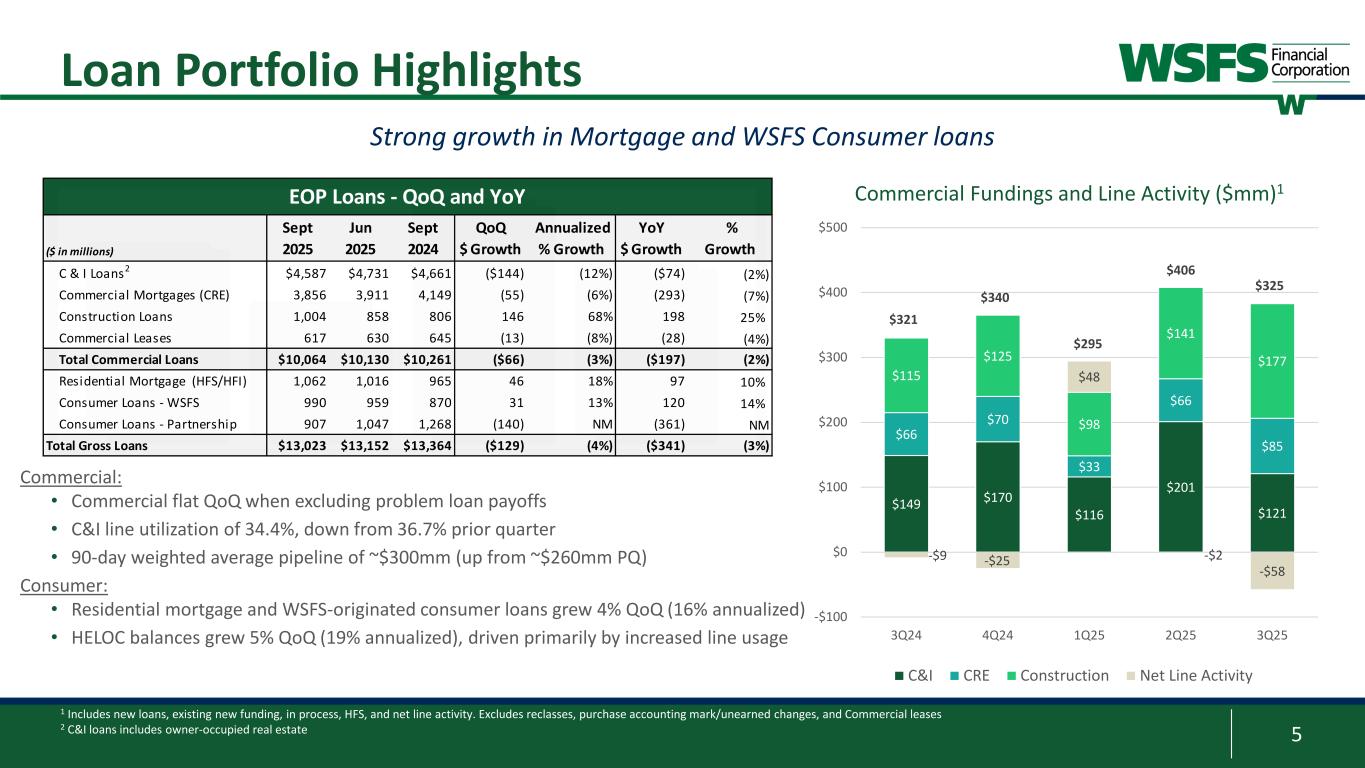 "Client deposits grew 2% (annualized) compared to 2Q 2025 and our WSFS-originated consumer loans grew 13% (annualized) over the prior quarter. We also saw notable improvements across our asset quality metrics, driven by the positive resolution of two large nonperforming loans.