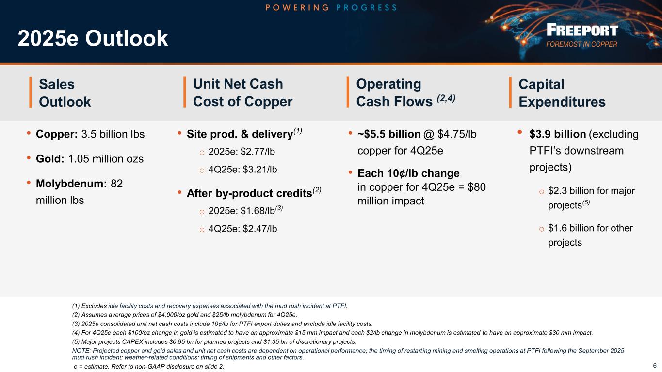 -2025年第4四半期の銅635百万ポンド、金60万オンス、モリブデン21百万ポンドを含め、2025年の連結売上高は銅約35億ポンド、金105万オンス、モリブデン82百万ポンドを見込む。2025年第4四半期の予想では、採掘・製錬事業が段階的に再開されるまでの間、インドネシアからの貢献は最低限にとどまると想定している。