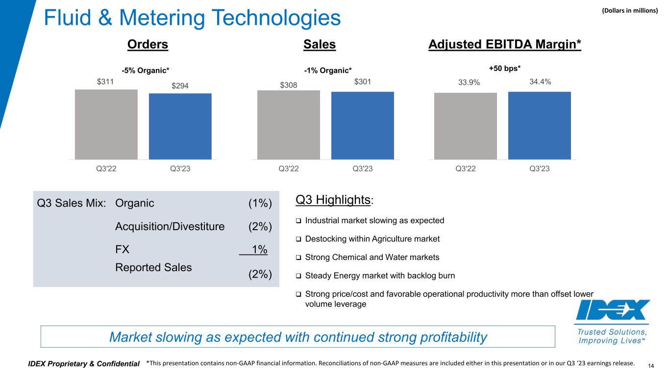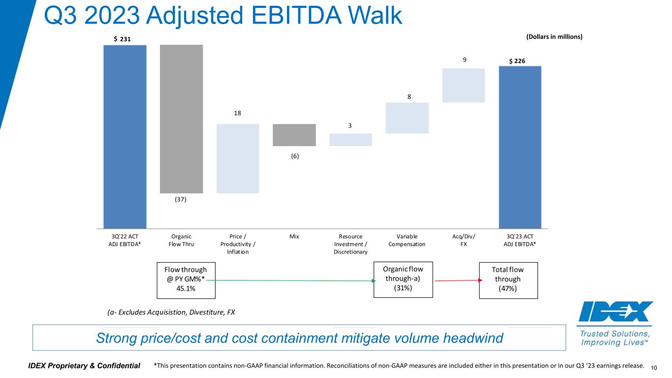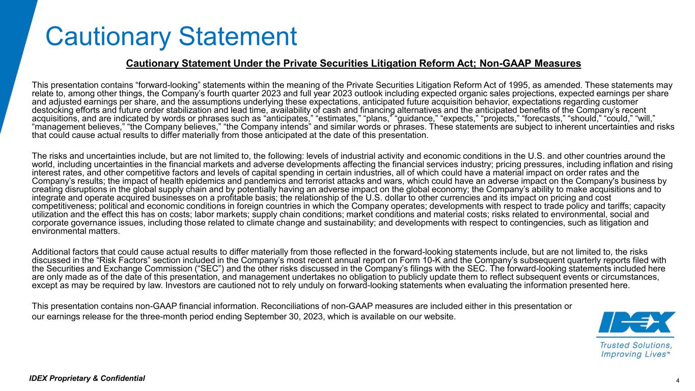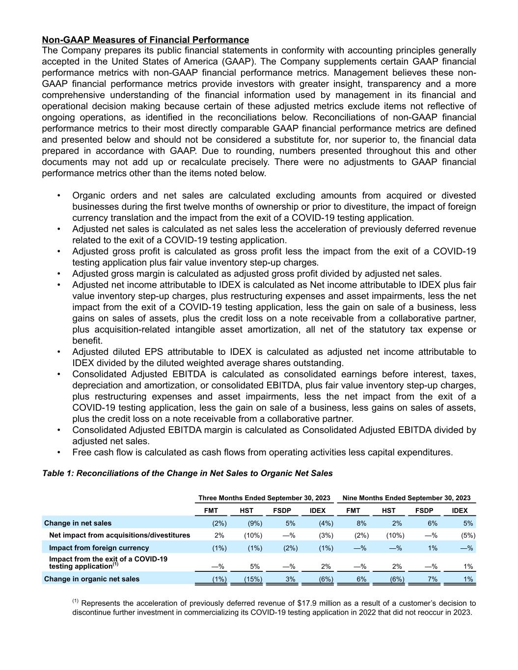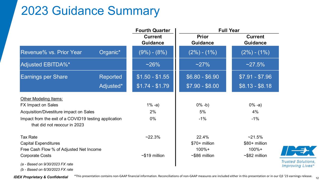 NORTHBROOK, IL, October 25, 2023 - IDEX Corporation (NYSE: IEX) today announced its financial results for the three month period ended September 30, 2023.
