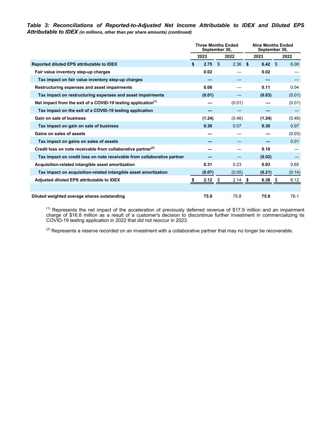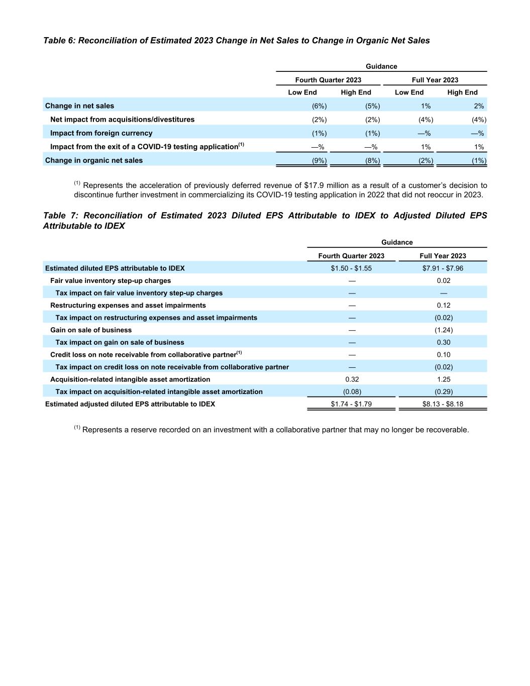 Table 7: Reconciliation of Estimated 2023 Diluted EPS Attributable to IDEX to Adjusted Diluted EPS Attributable to IDEX