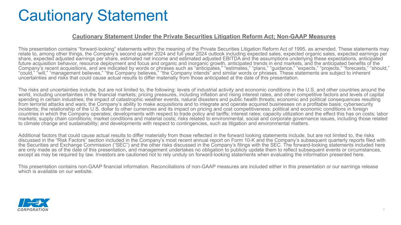イリノイ州ノースブルック、2024年4月23日-アイデックス・コーポレーション(NYSE:IEX)は本日、2024年3月31日に終了した3カ月間の決算を発表した。