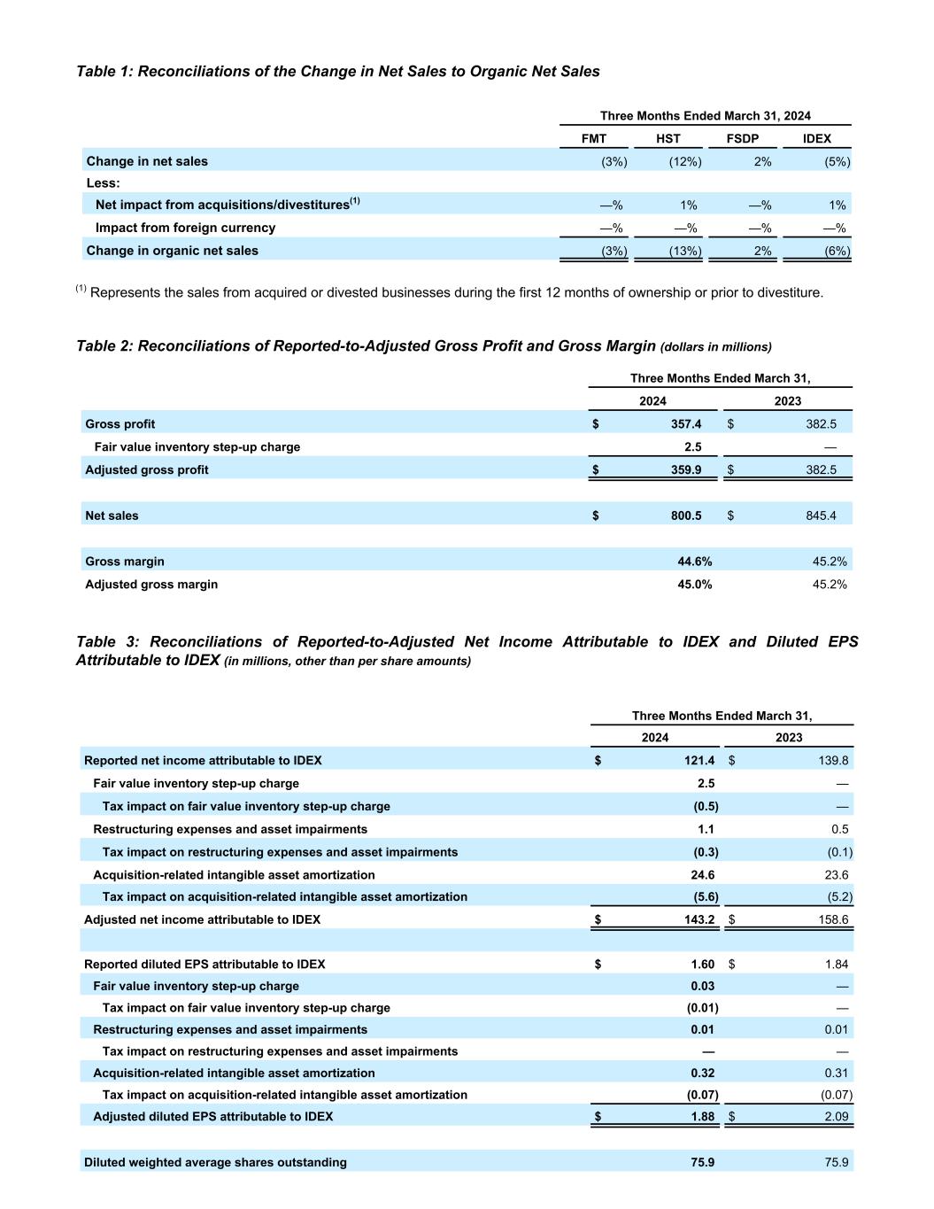 | (a) 3ヵ月間のデータには、HSTセグメントにおけるIridian Spectral Technologies(2023年5月)およびSTC Material Solutions(2023年12月)の買収による業績が含まれる。また、3ヵ月間のデータには、HSTセグメントにおけるMicropump, Inc.(2023年8月)およびNovotema, SpA(2023年12月)の処分日までの業績が含まれる。 |