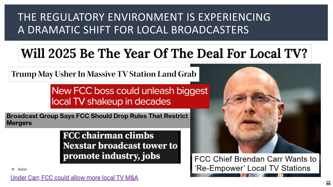 THE REGULATORY ENVIRONMENT IS EXPERIENCING A DRAMATIC SHIFT FOR LOCAL BROADCASTERS 7