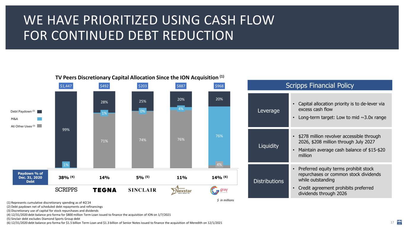 I N V E S T O R P R E S E N T A T I O N S P R I N G 2 0 2 5 G I V E L I G H T A N D T H E P E O P L E W I L L F I N D T H E I R O W N W A Y THE E.W. SCRIPPS COMPANY