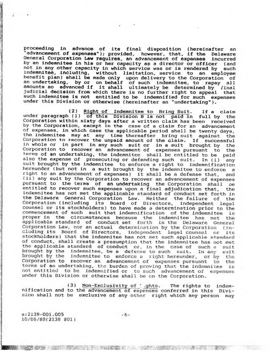 | · | Significant litigation exposure due to actual or threatened litigation |