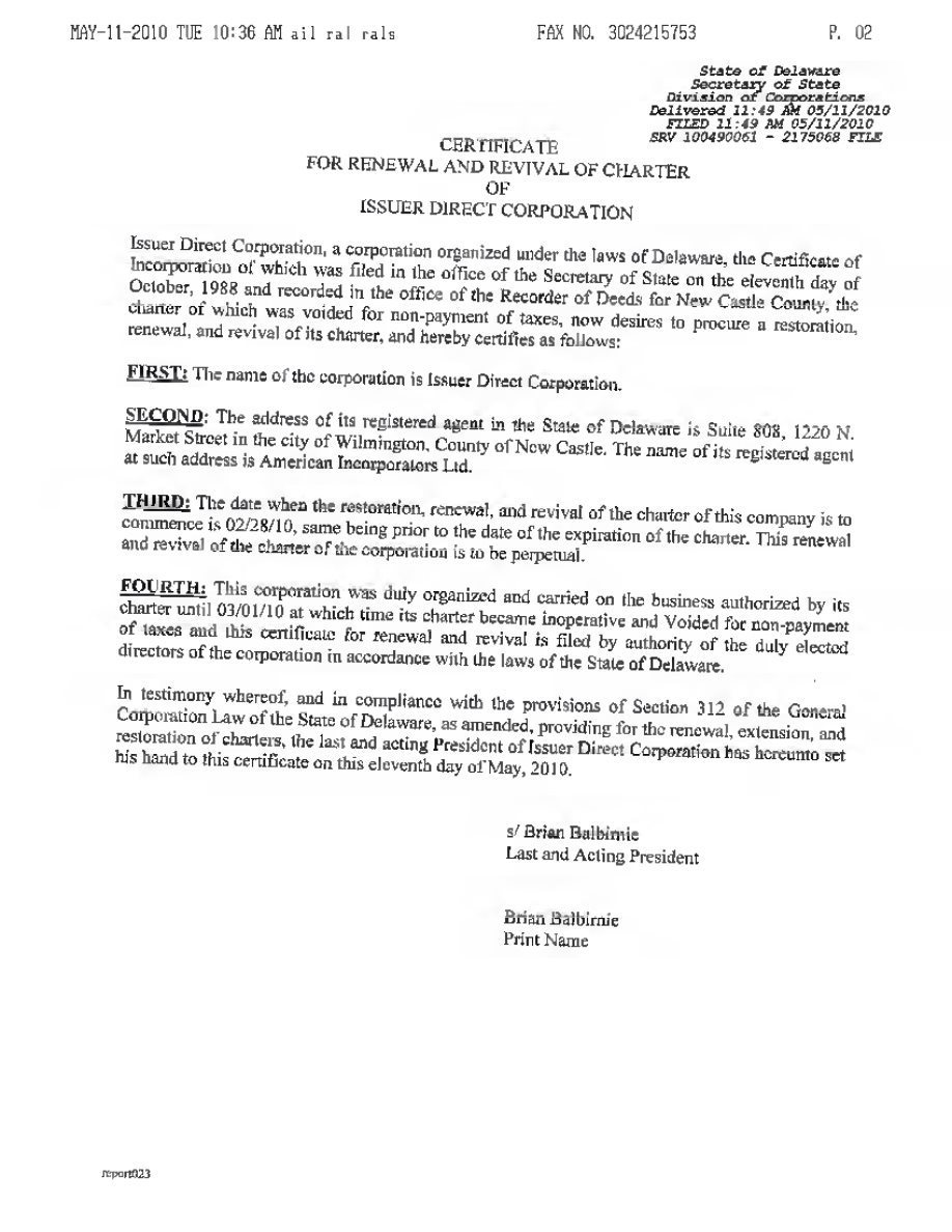 A certification furnished pursuant to this Item will not be deemed “filed” for purposes of section 18 of the Exchange Act (15 U.S.C. 78r), or otherwise subject to the liability of that section. Such certification will not be deemed to be incorporated by reference into any filing under the Securities Act or the Exchange Act, except to the extent that the small business issuer specifically incorporates it by reference.