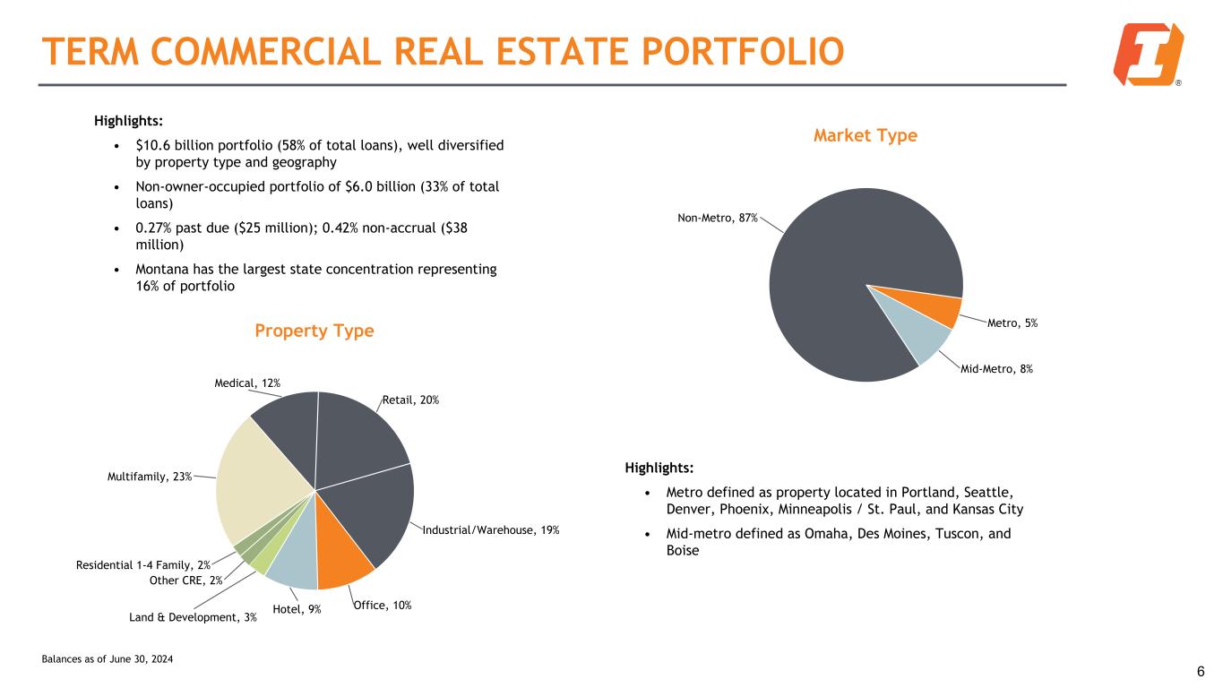 「当部門は第 2 四半期も順調に業務を遂行し、業績は概ね予想通りでした。予想通り純利鞘が拡大したこと、不良資産が減少したこと、引き続き経費を抑制できたことを喜ばしく思います。強固な資本と流動性、適切な貸倒引当金、純利鞘の拡大および経費抑制の継続的な期待から、当行は 2024 年から 2025 年にかけての残りの期間、十分な態勢を整えており、堅実なリターンを生み出す能力に引き続き自信を持っています」と、ファースト・インター ステート・バンクシステム社長兼最高経営責任者のケビン・P・ライリーは述べました。
