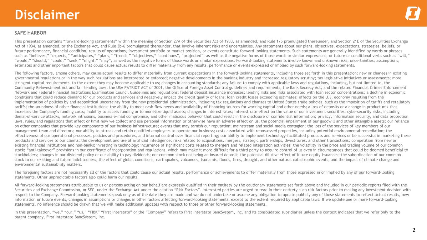 2 SAFE HARBOR This presentation contains “forward-looking statements” within the meaning of Section 27A of the Securities Act of 1933, as amended, and Rule 175 promulgated thereunder, and Section 21E of the Securities Exchange Act of 1934, as amended, or the Exchange Act, and Rule 3b-6 promulgated thereunder, that involve inherent risks and uncertainties. Any statements about our plans, objectives, expectations, strategies, beliefs, or future performance, financial condition, results of operations, investment portfolio or market position, or events constitute forward-looking statements. Such statements are generally identified by words or phrases such as “believes,” “expects,” “anticipates,” “plans,” “trends,” “objectives,” “continues”, “projected”, as well as the negative forms of those words or similar expressions, or future or conditional verbs such as “will,” “would,” “should,” “could,” “seek,” “might,” “may”, as well as the negative forms of those words or similar expressions. Forward-looking statements involve known and unknown risks, uncertainties, assumptions, estimates and other important factors that could cause actual results to differ materially from any results, performance or events expressed or implied by such forward-looking statements. The following factors, among others, may cause actual results to differ materially from current expectations in the forward-looking statements, including those set forth in this presentation: new or changes in existing governmental regulations or in the way such regulations are interpreted or enforced; negative developments in the banking industry and increased regulatory scrutiny; tax legislative initiatives or assessments; more stringent capital requirements, to the extent they may become applicable to us; changes in accounting standards; any failure to comply with applicable laws and regulations, including, but not limited to, the Community Reinvestment Act and fair lending laws, the USA PATRIOT ACT of 2001, the Office of Foreign Asset Control guidelines and requirements, the Bank Secrecy Act, and the related Financial Crimes Enforcement Network and Federal Financial Institutions Examination Council Guidelines and regulations; federal deposit insurance increases; lending risks and risks associated with loan sector concentrations; a decline in economic conditions that could reduce demand for our products and services and negatively impact the credit quality of loans; loan credit losses exceeding estimates; effects on the U.S. economy resulting from the implementation of policies by and geopolitical uncertainty from the new presidential administration, including tax regulations and changes to United States trade policies, such as the imposition of tariffs and retaliatory tariffs; the soundness of other financial institutions; the ability to meet cash flow needs and availability of financing sources for working capital and other needs; a loss of deposits or a change in product mix that increases the Company’s funding costs; inability to access funding or to monetize liquid assets; changes in interest rates; interest rate effect on the value of our investment securities; cybersecurity risks, including denial-of-service attacks, network intrusions, business e-mail compromise, and other malicious behavior that could result in the disclosure of confidential information; privacy, information security, and data protection laws, rules, and regulations that affect or limit how we collect and use personal information or otherwise have an adverse effect on us; the potential impairment of our goodwill and other intangible assets; our reliance on other companies that provide key components of our business infrastructure; events that may tarnish our reputation; mainstream and social media contagion; the loss of the services of key members of our management team and directors; our ability to attract and retain qualified employees to operate our business; costs associated with repossessed properties, including potential environmental remediation; the effectiveness of our operational processes, policies and procedures, and internal control over financial reporting; our ability to implement technology-facilitated products and services or be successful in marketing these products and services to our clients; the development and use of artificial intelligence; risks related to acquisitions, mergers, strategic partnerships, divestitures, and other transactions; competition from new or existing financial institutions and non-banks; investing in technology; incurrence of significant costs related to mergers and related integration activities; the volatility in the price and trading volume of our common stock; “anti-takeover” provisions in our certificate of incorporation and regulations, which may make it more difficult for a third party to acquire control of us even in circumstances that could be deemed beneficial to stockholders; changes in our dividend policy or our ability to pay dividends; our common stock not being an insured deposit; the potential dilutive effect of future equity issuances; the subordination of our common stock to our existing and future indebtedness; the effect of global conditions, earthquakes, volcanoes, tsunamis, floods, fires, drought, and other natural catastrophic events; and the impact of climate change and environmental sustainability matters. The foregoing factors are not necessarily all of the factors that could cause our actual results, performance or achievements to differ materially from those expressed in or implied by any of our forward-looking statements. Other unpredictable factors also could harm our results. All forward-looking statements attributable to us or persons acting on our behalf are expressly qualified in their entirety by the cautionary statements set forth above and included in our periodic reports filed with the Securities and Exchange 