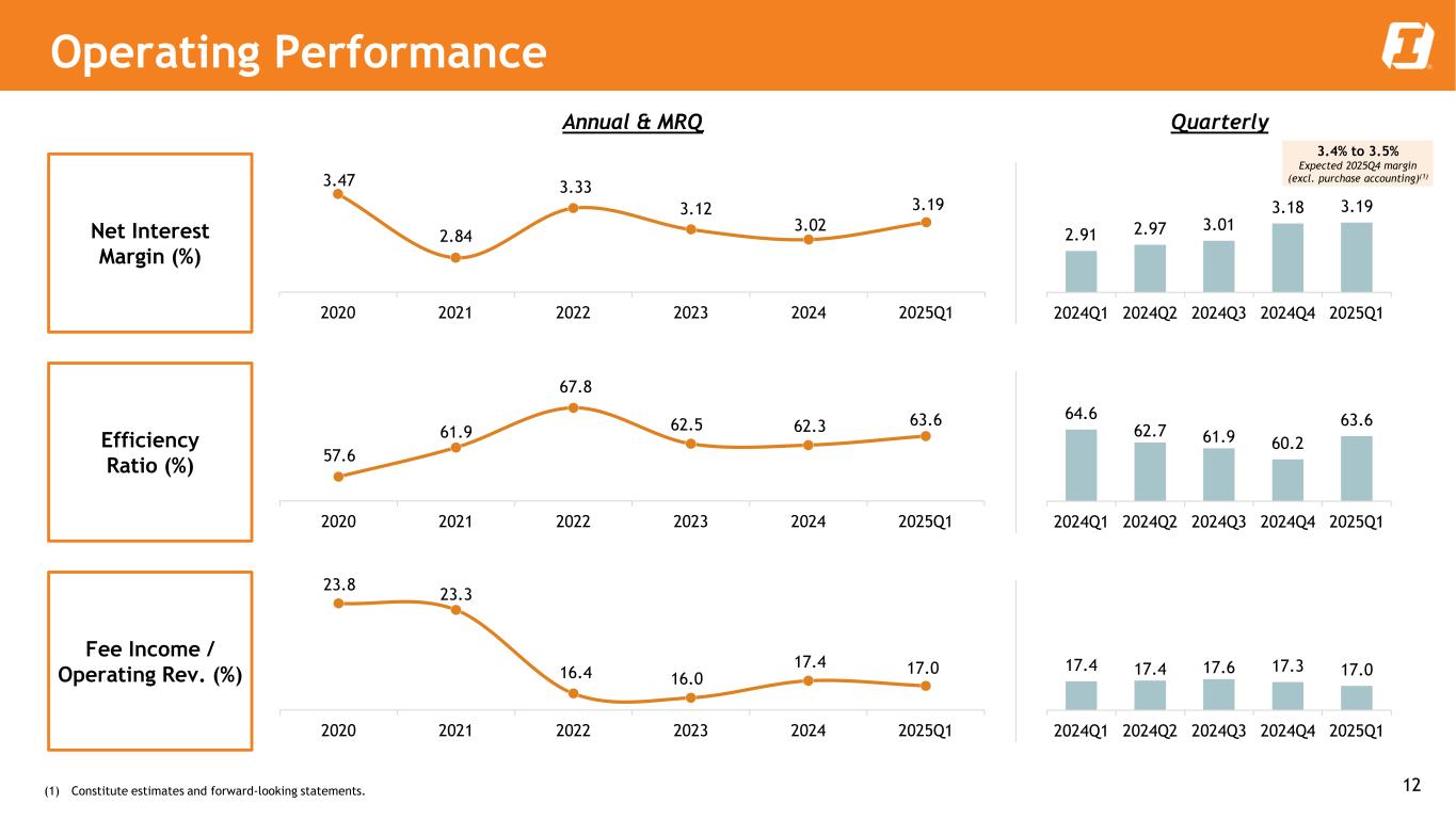 12 Net Interest Margin (%) Efficiency Ratio (%) Fee Income / Operating Rev. (%) Operating Performance Annual & MRQ Quarterly 3.47 2.84 3.33 3.12 3.02 3.19 2020 2021 2022 2023 2024 2025Q1 57.6 61.9 67.8 62.5 62.3 63.6 2020 2021 2022 2023 2024 2025Q1 23.8 23.3 16.4 16.0 17.4 17.0 2020 2021 2022 2023 2024 2025Q1 2.91 2.97 3.01 3.18 3.19 2024Q1 2024Q2 2024Q3 2024Q4 2025Q1 64.6 62.7 61.9 60.2 63.6 2024Q1 2024Q2 2024Q3 2024Q4 2025Q1 17.4 17.4 17.6 17.3 17.0 2024Q1 2024Q2 2024Q3 2024Q4 2025Q1 3.4% to 3.5% Expected 2025Q4 margin (excl. purchase accounting)(1) (1) Constitute estimates and forward-looking statements.