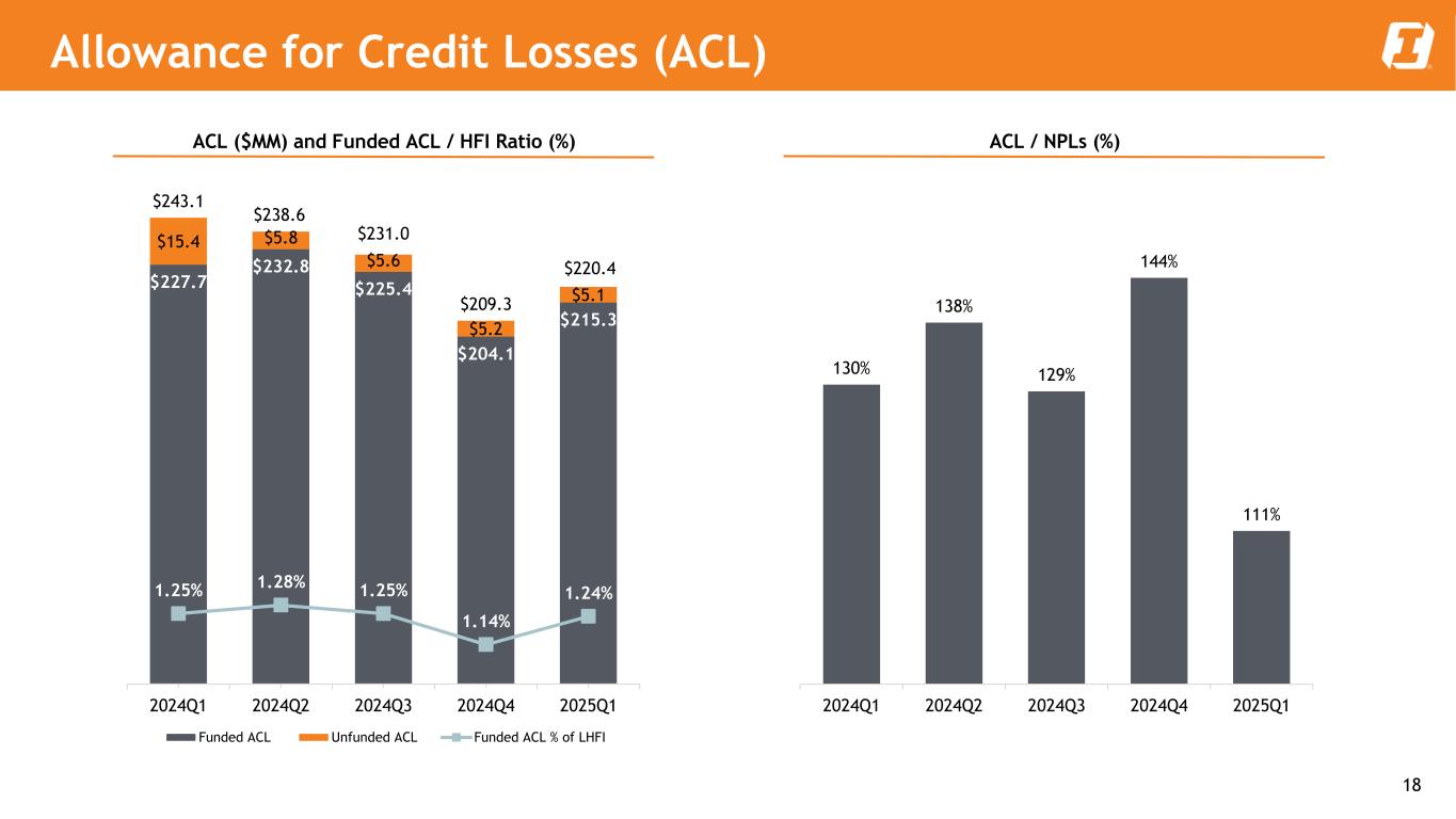 18 130% 138% 129% 144% 111% 2024Q1 2024Q2 2024Q3 2024Q4 2025Q1 $227.7 $232.8 $225.4 $204.1 $215.3 $15.4 $5.8 $5.6 $5.2 $5.1 $243.1 $238.6 $231.0 $209.3 $220.4 1.25% 1.28% 1.25% 1.14% 1.24% 2024Q1 2024Q2 2024Q3 2024Q4 2025Q1 Funded ACL Unfunded ACL Funded ACL % of LHFI ACL ($MM) and Funded ACL / HFI Ratio (%) ACL / NPLs (%) Allowance for Credit Losses (ACL)