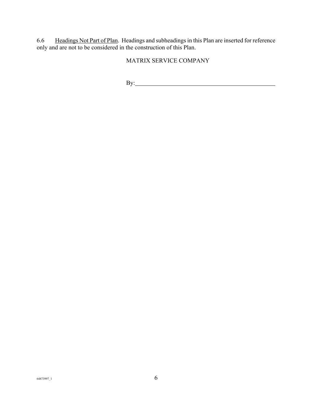 64873997_1 6 6.6 Headings Not Part of Plan. Headings and subheadings in this Plan are inserted for reference only and are not to be considered in the construction of this Plan. MATRIX SERVICE COMPANY By:
